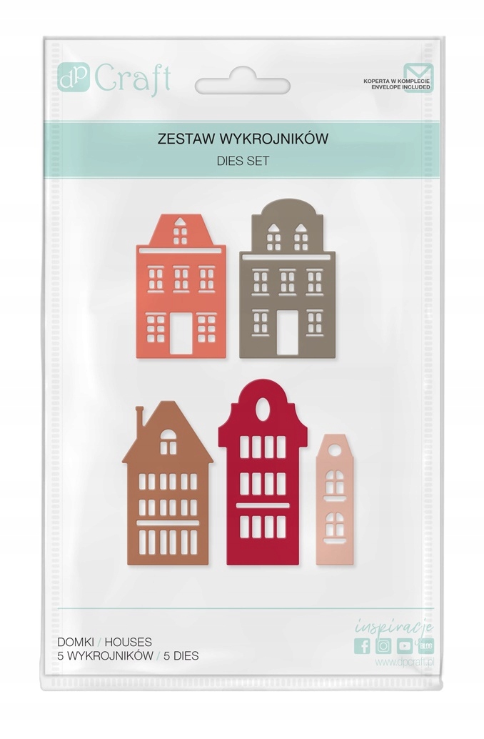 Набір штампів із мотивом позачасових багатоквартирних будинків. Він складається з 5 елементів різного дизайну та розміру. Завдяки їм можна створити оригінальні вітальні листівки, прикрасити сімейний фотоальбом або створити фантастичні вітражі. Будиночки можна додатково прикрасити та розфарбувати. Подаруйте їм зимову атмосферу за допомогою блиску та штучного снігу. Штампи ріжуть папір до 300 г, картон і пінопласт. Упакований в естетичний і практичний пластиковий конверт для зберігання матриці. Виготовлений з вуглецевої сталі, що робить матрицю більш гнучкою та стійкою до деформації, спричиненої машинним тиском. Набір, присвячений машині для різання та тиснення dpCraft, також сумісний з усіма машинами цього типу, доступними на ринку. У набір входить: 5 шт. Розміри: від 12 x 42 мм до 29 x 60 мм
