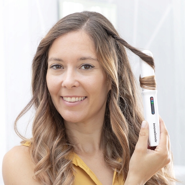 Бездротовий випрямляч для волосся. Його компактні розміри дозволяють випрямляти і завивати волосся в будь-якому місці і в будь-який час. Має захисний замок, автоматичне відключення та різні рівні температури для адаптації до всіх типів волосся. Керамічні пластини не псують волосся. Крім того, він дуже практичний, оскільки його також можна використовувати як аварійний блок живлення.