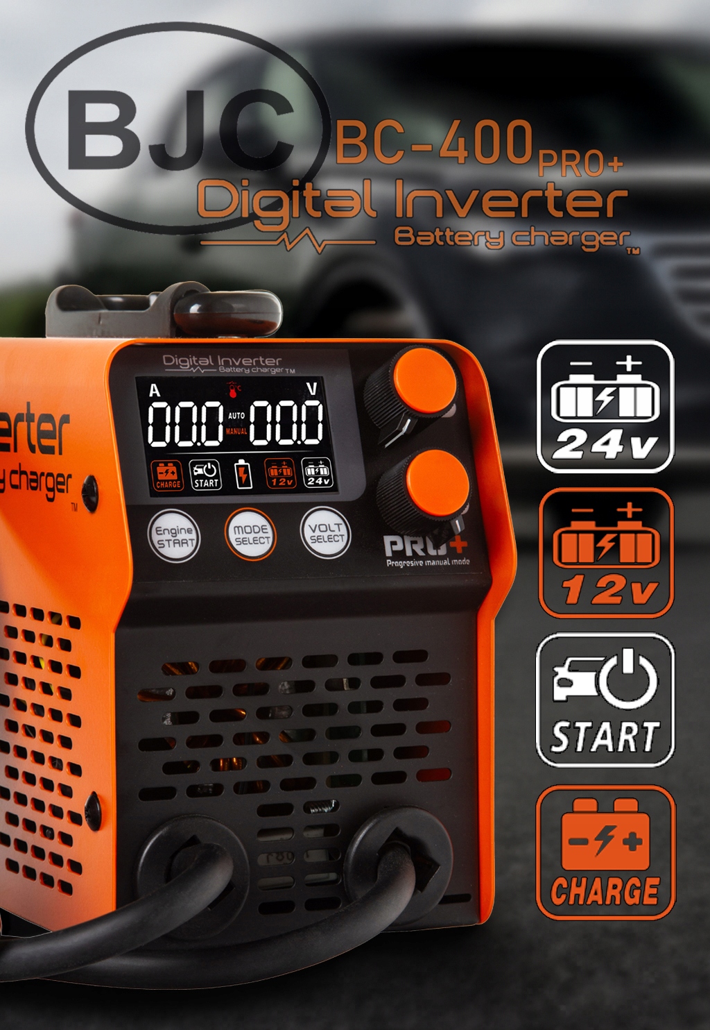 Інверторний випрямляч BJC забезпечує можливість ефективного та ефективного заряджання та запуску акумуляторів як 12В, так і 24В.