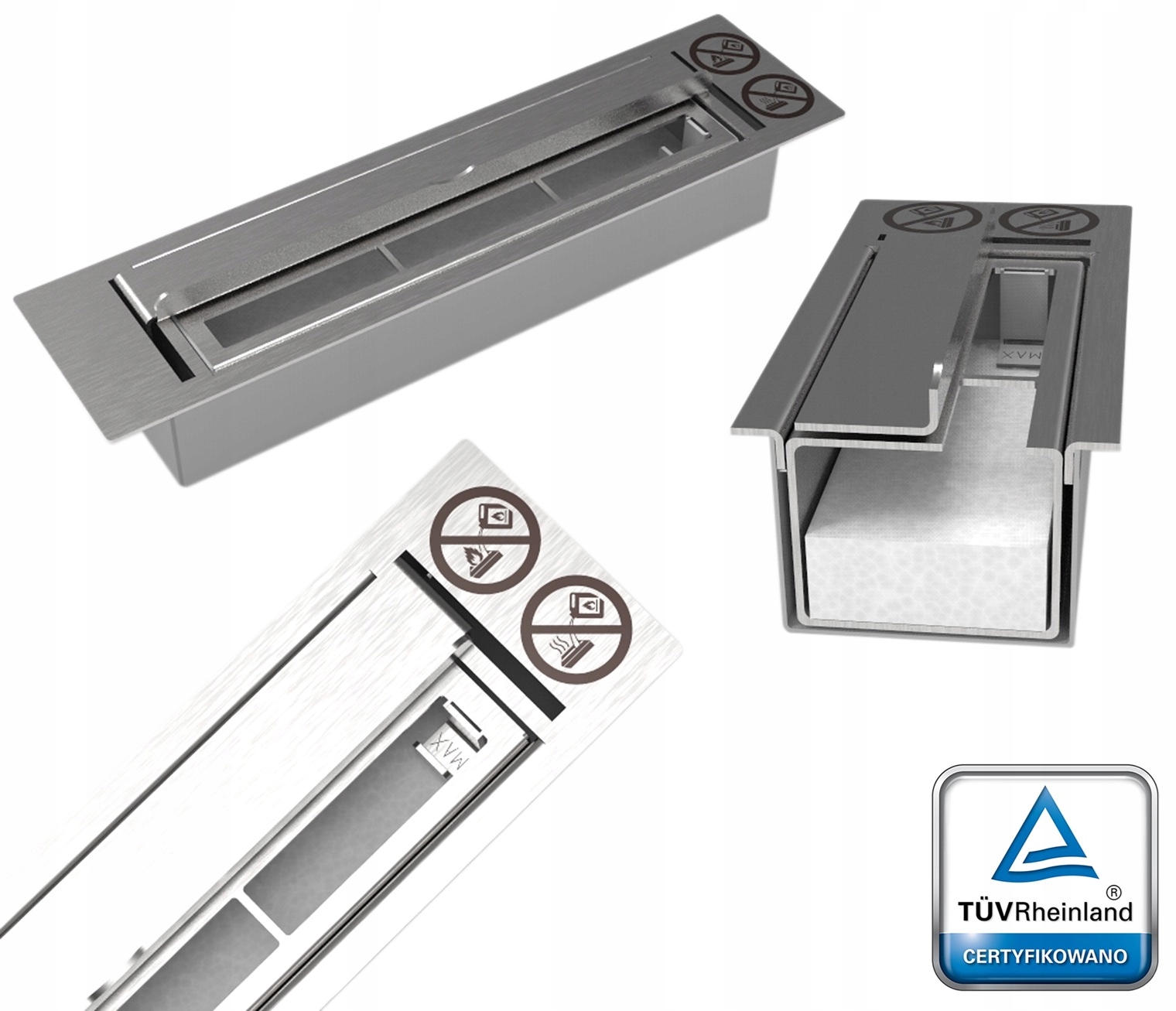 Висувані біофірпи нашого виробництва мають пальник із сертифікатом безпеки TUV . Сертифікат видається відомою лабораторією TUV Rheinland вивчення аспектів безпеки наших товарів. Пальник біо -каміна також має подвійне дно та лімфатичну вставку , які захищають від небажаного розливу біопалива.