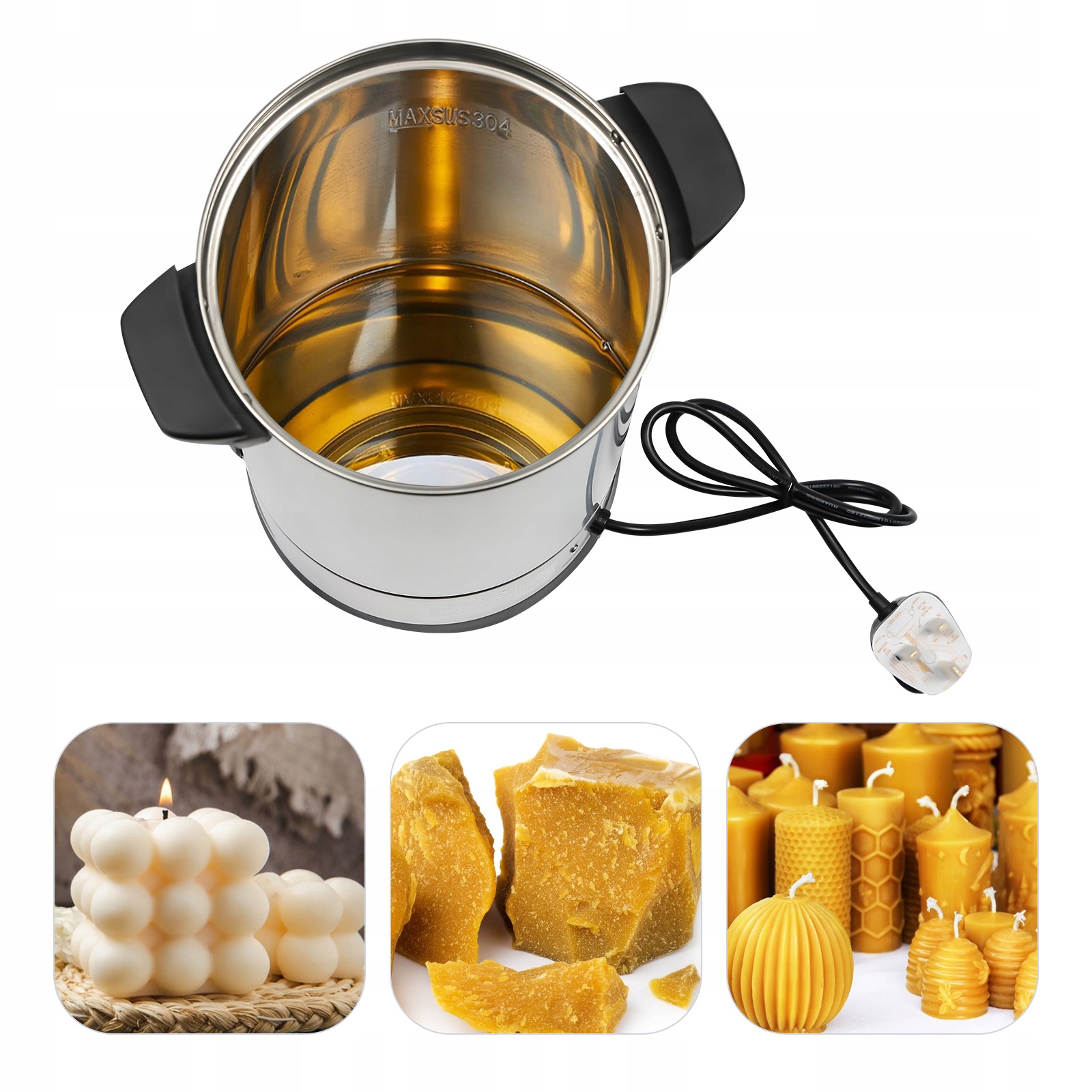 Цей восковий плавильний горщик може бути використаний для розплавлення багатьох видів воску, таких як соєвий віск і парафін. Оскільки він виготовлений з обіднього матеріалу 304, його також можна використовувати для розплаву бджолиного воску, обробленого у вуликах бджіл. Зробіть свій подарунок для свічки.