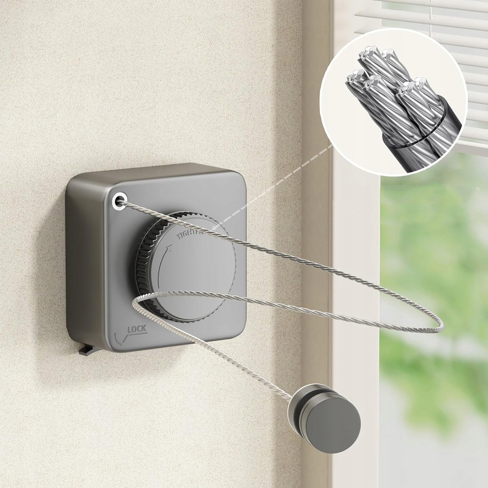 шнур для одягу виготовлений з високоякісної корпусу ABS, алюмінієвої основи та кабелю з нержавіючої сталі. Водонепроникний, стійкий до іржі та сонця. Незалежно від того, чи в кімнаті чи зовні, наша білизна - це хороший вибір.