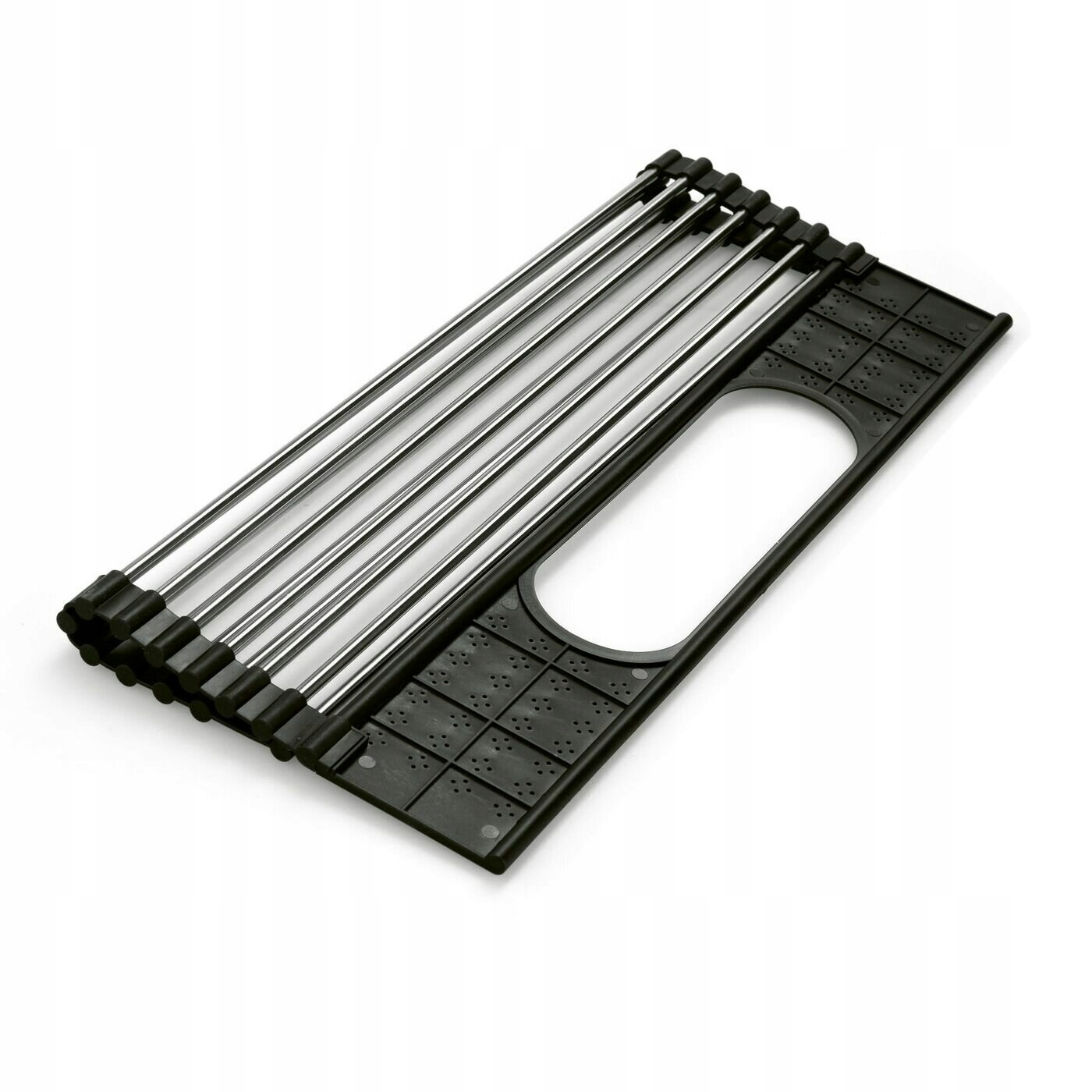 Сушарка для посуду Tadar Roll Up з сушаркою для столових приборів 44 х 28 см — дуже практичне рішення для домашньої кухні. Коли він вам не потрібен, ви можете зберігати його легко та мало місця, оскільки він має розбірну конструкцію. Конструкція моделі поєднує металеві стрижні та гнучку пластикову обробку. Крім того, в ньому є місце для встановлення зливного отвору, що входить у комплект. Щодня у вас буде більше місця, щоб прибрати вологий посуд під час його сушіння. Ви не подряпаєте раковину, поставивши модель на краї та стійко поставивши її над чашею. Ви також переконаєтеся, що функція зливу працює (як для посуду, так і для вимитих фруктів і овочів). Двокамерний сушарка дозволяє якісно висушити посуд і столові прибори. Ви можете легко підтримувати його в чистоті, оскільки він має просту структуру. Також характеризується високою стійкістю до вологи.