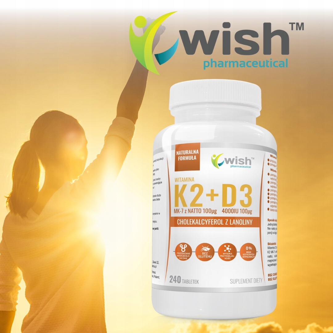 Вітамін K2 MK-7 з NATTO + D3 4000 МО від WISH PHARMACEUTICAL®