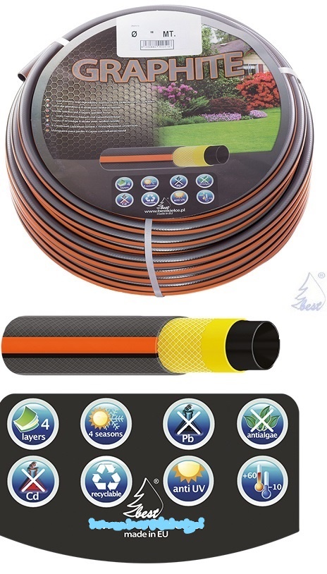 - Графітовий садовий шланг, 4 шари, підвищеної ваги та довговічності.