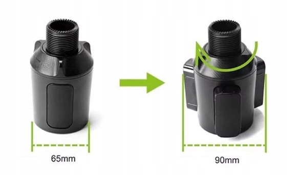 Ручка дозволяє розширити основу в діапазоні 65–90 мм, завдяки якому аксесуар, ймовірно, тримає навіть під час руху нерівномірності.