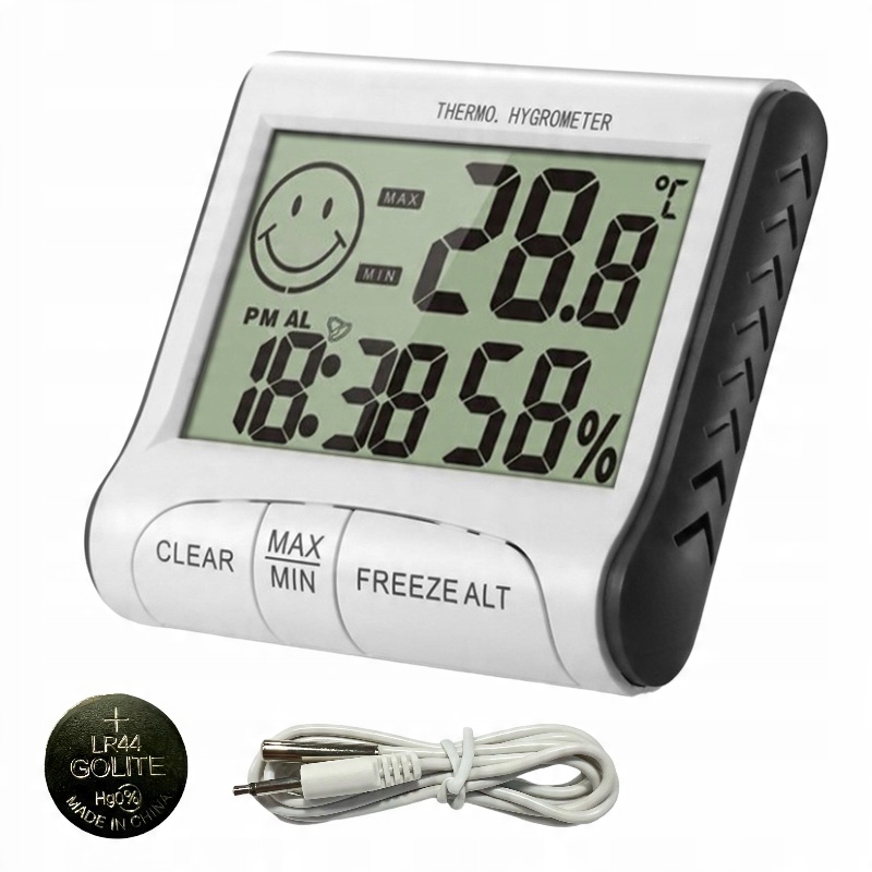 термометр для вимірювання температури та вологості. Вам слід їхати туди, де це залежить від вимірювання цих показників. Поліпшення працювало в будинках, офісах або промисловому промисловості. 4
