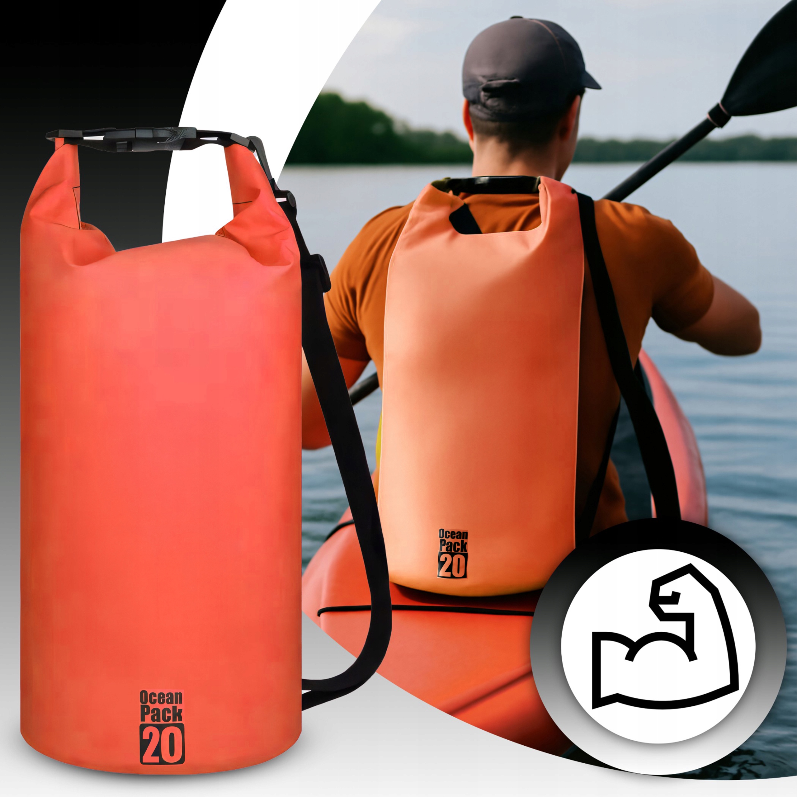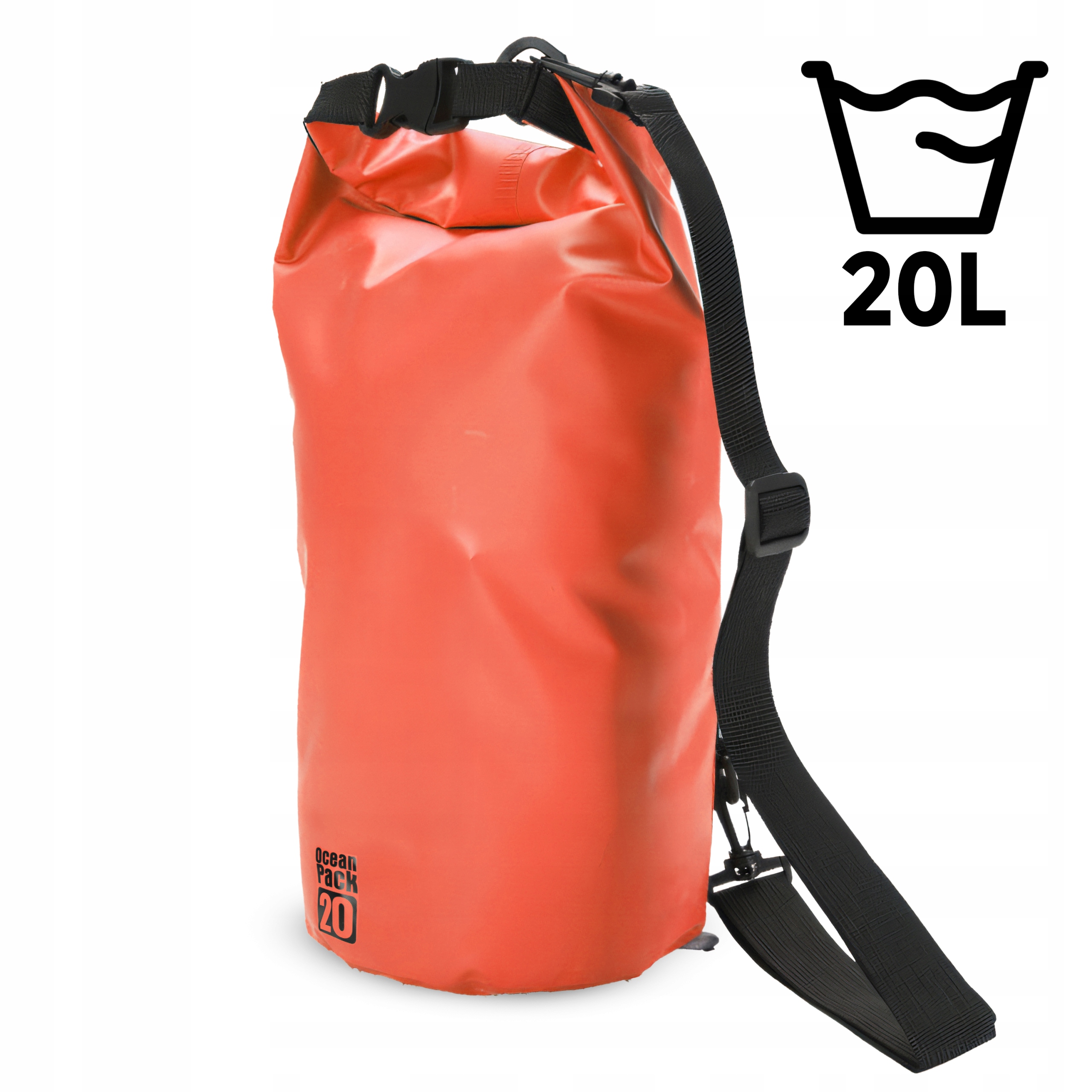 Сумка має 20 л ємності. Це дозволяє розмістити необхідні речі, які ми хочемо захистити від води. Сумка ідеально підходить як сумка під час довгих поїздок, подорожей на велосипеді, байдарках або пікніках.