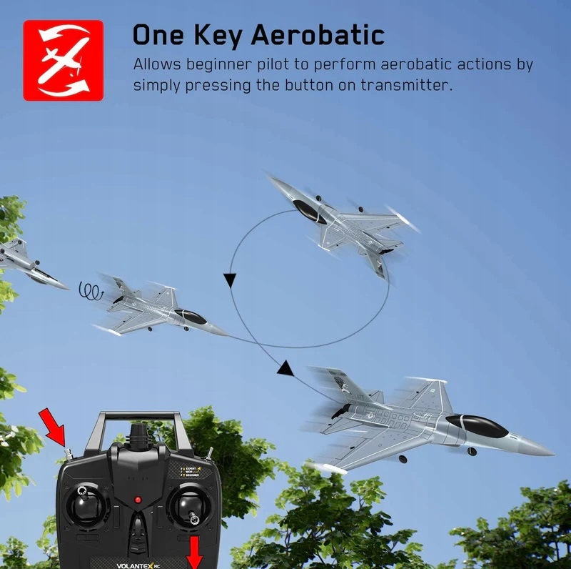 Volantex RC F16 Falcon 761-10-це невелике повітря з чудовими виконанням. Завдяки інтегрованому стабілізатору xpilot Gyroscope з потужним двигуном, літак летить стабільно, спритно і може виконувати акробатику. Він був оснащений акробатикою, просто натисніть одну кнопку і витягніть палицю, щоб легко керувати F16 та виконувати акробатику. 3-рівневий помічник з управління польотом (рівень початківців з повною допомогою / проміжною за допомогою часткової допомоги / експерта в галузі ручного контролю) допомагає початківцям навчитися літати поетапно. Діапазон контрольного апарату становить близько 200 м, час літаючих на 1 зарядку до 10 хвилин.