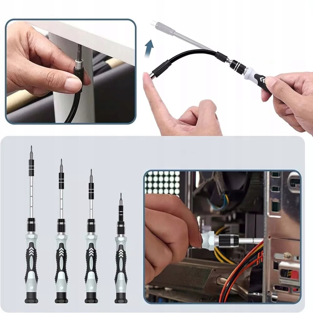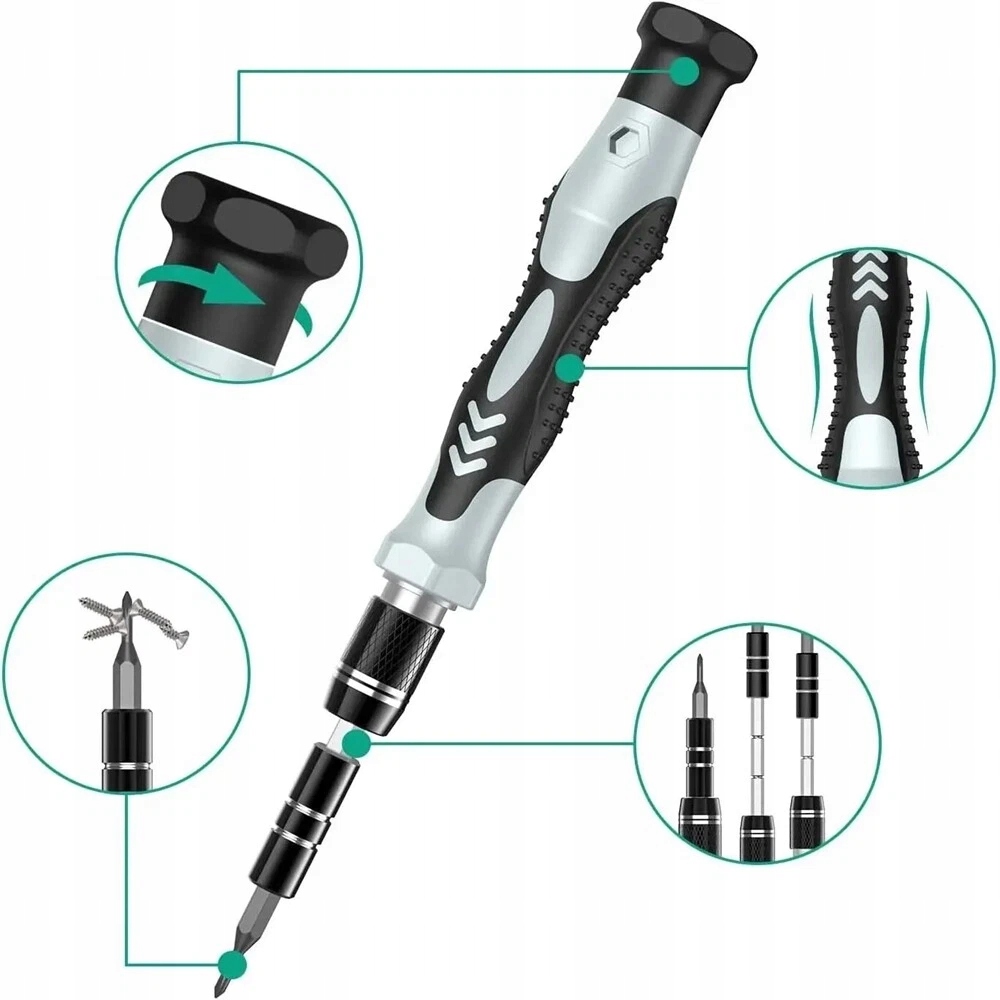 【інтегрований контейнер для зберігання з магнелітатором】 Набір мініатюрних точних викруток з магнелітатором. Магнетайзер ідеально інтегрований з контейнером, завдяки якому він менш сприйнятливий до втрати. Крім того, наконечники викруток є магнітними, що має вирішальне значення при роботі з невеликими гвинтами. Це забезпечує безпечне кріплення гвинтів і заважає їм випадати або програш, особливо в тісних місцях. Ця функція економить багато розчарувань.