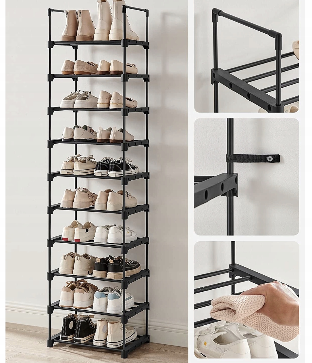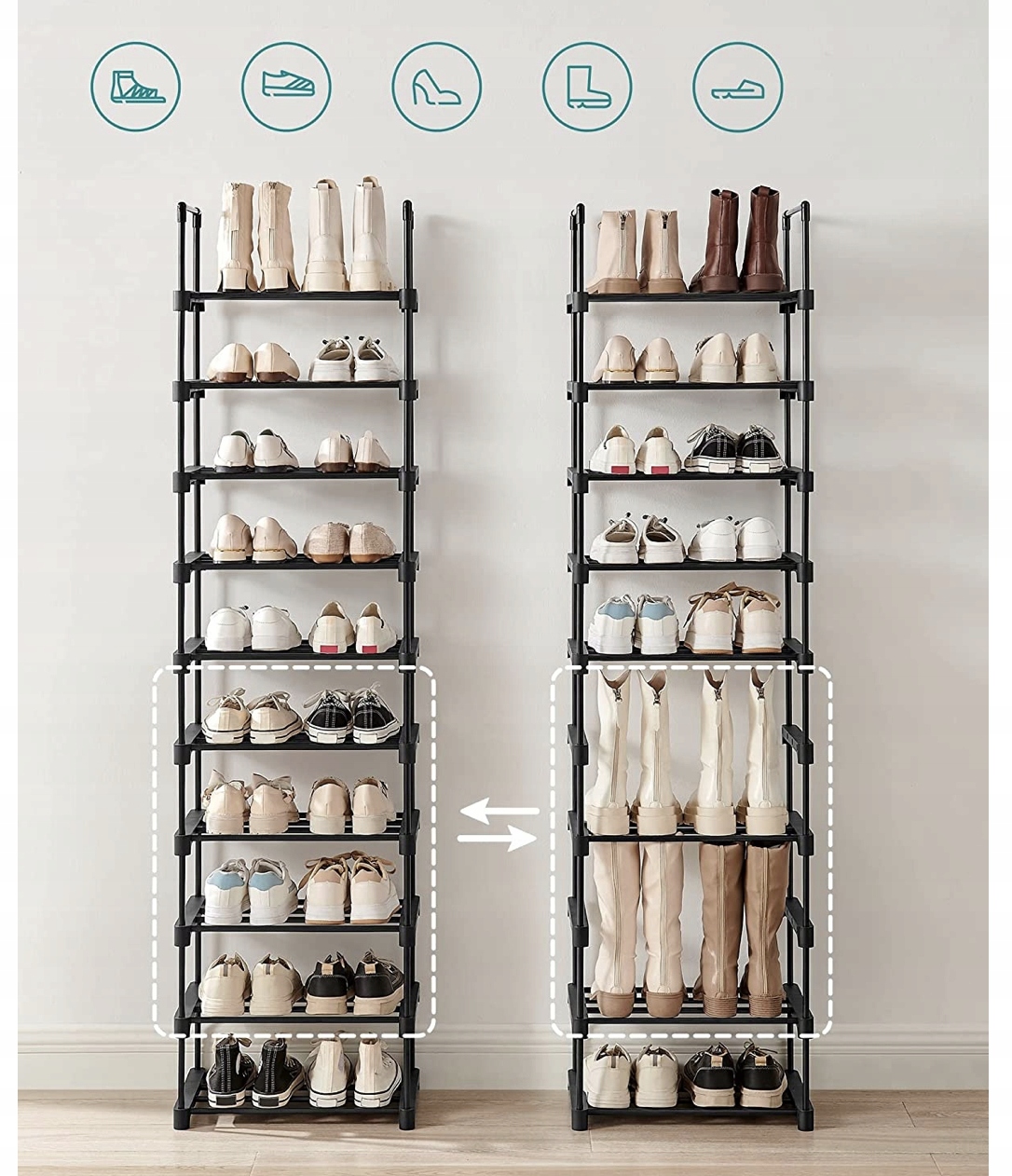 Стильна стійка для взуття для горища | 10 рівнів Чорна металева книжкова шафа