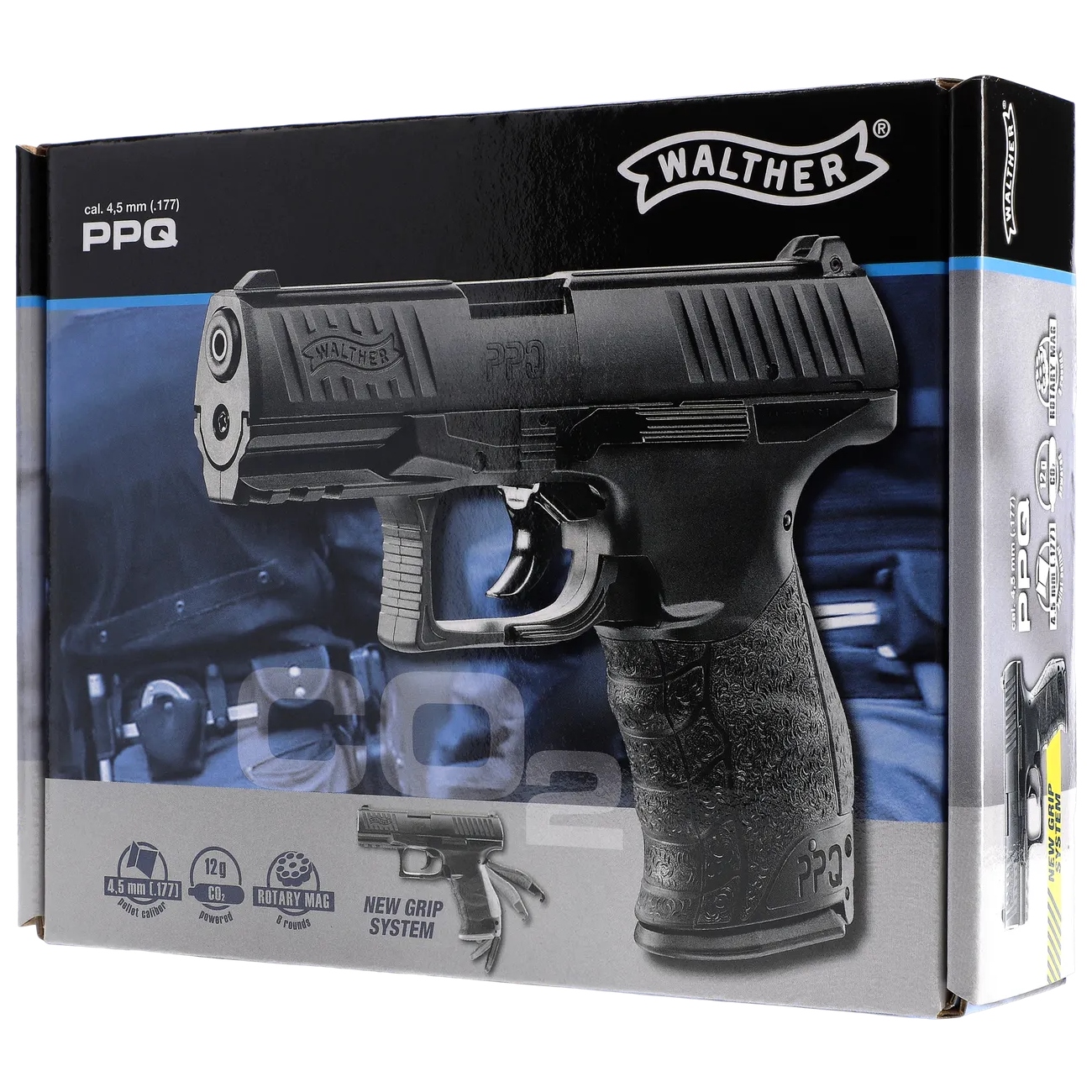 Walther PPQ 4,5 мм CO2 - це вітряк з різьбовою бочкою, що стріляє з пострілом Diabolo , присвяченим людям, які шукають точного та ефективного пістолета для рекреаційної стрілянини. у вогнепальній зброї. Цей вітряк працює від капсули СО2 12 г і стріляє diabolo в 4,5 мм калібру.