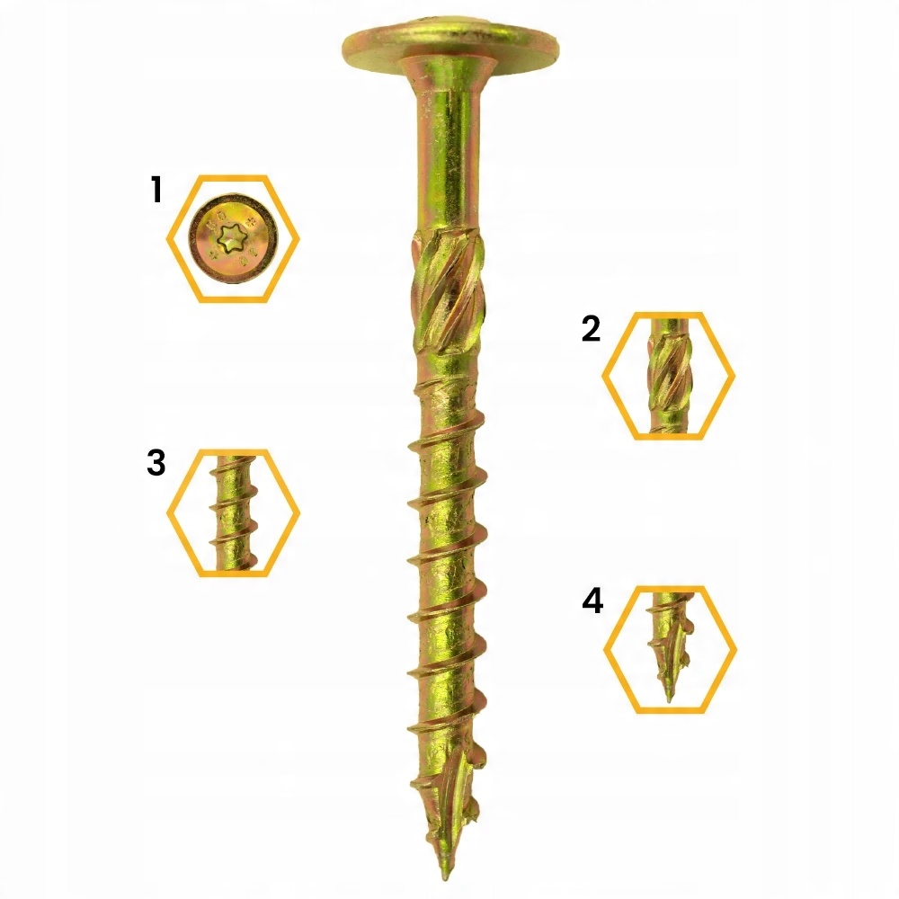 зменшує момент сили, необхідної для викручування, розширюючи отвір у кріпленому елементі. На 20% менше опору при викрученні, що продовжує час роботи акумулятора та інструменти. Нитка різання кадрів вирізає волокна дерев’яної конструкції під час викручування.