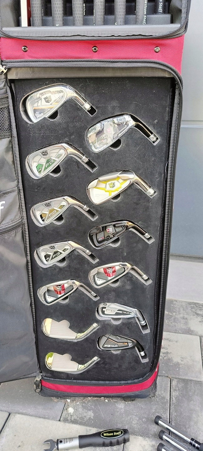 Вілсон персоналу на замовлення Fit Center, що містить голови та хитрі, у відмінному стані. Ідеальний вибір для гольфістів, які шукають можливості адаптувати полюси до власних потреб. Завдяки цьому наборі ви можете створити ідеально відповідні палички для водолазки, забезпечуючи найкращу продуктивність та комфорт гри. Технічні характеристики: