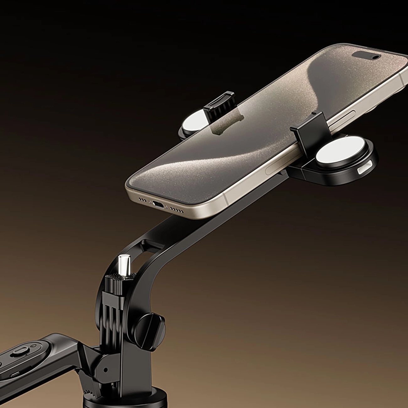 Власник телефону в Selfie, що наклеює WH181D-Y1S, відключений, що надає йому функціональні можливості. Підходить до смартфонів шириною від 65 до 95 мм, що робить його сумісним з більшістю пристроїв, доступних на ринку. Завдяки легкій збірці та розбиранні ви можете швидко перейти від запису до редагування кадрів.