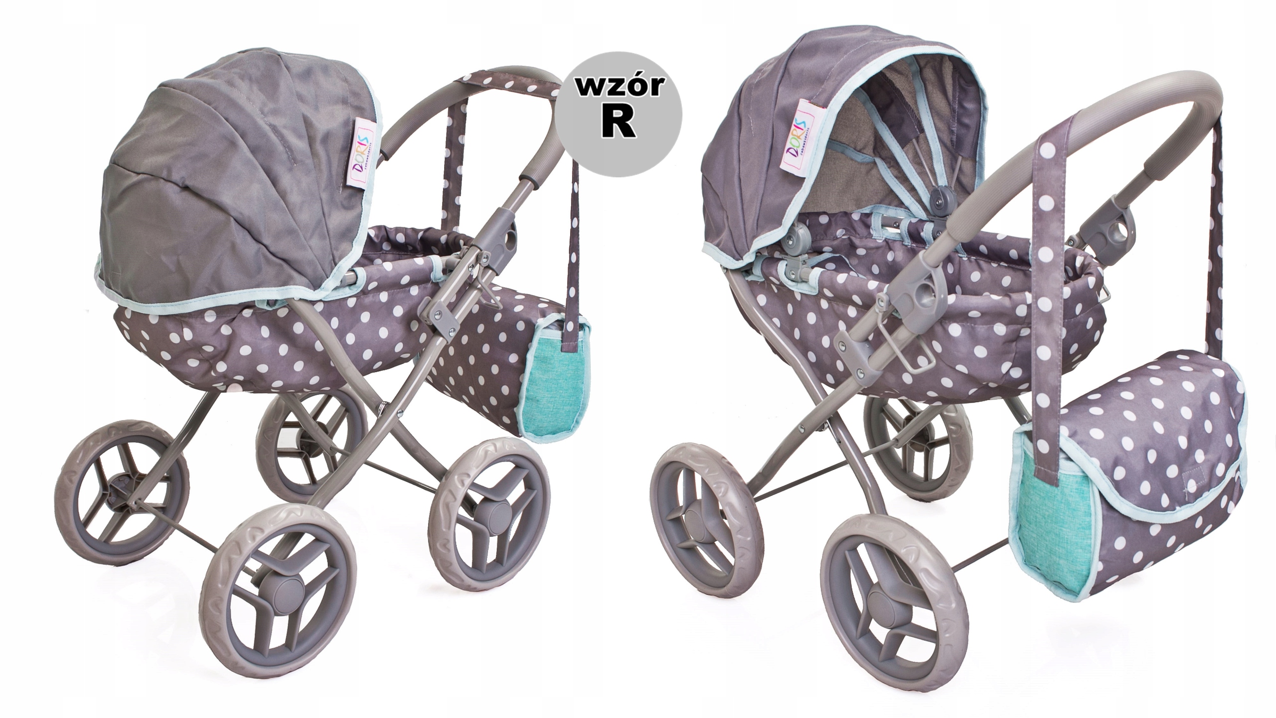 Wózek dla lalek GŁĘBOKI GONDOLA SKŁADANY DASZEK + TORBA dla lalki Doris