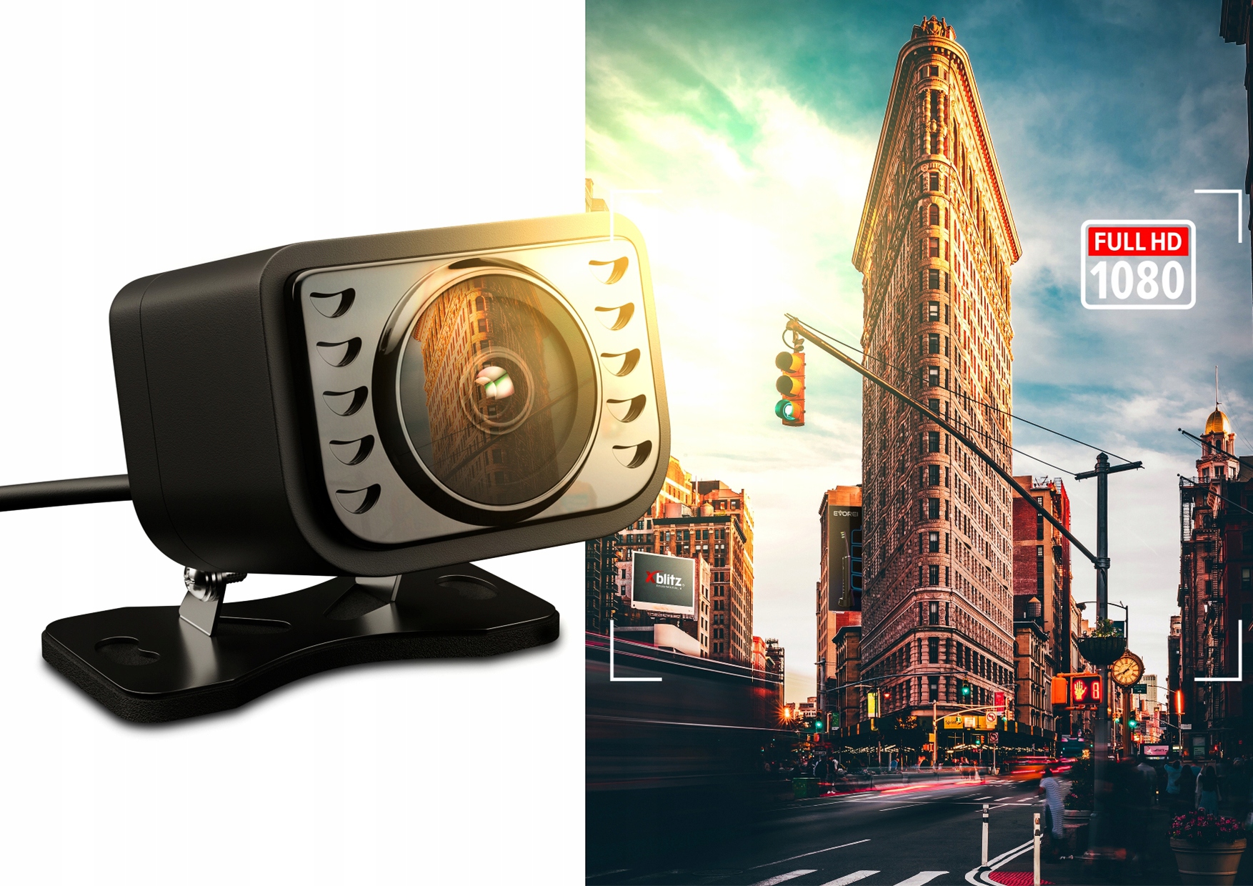 xblitz S10 дует - це набір, що складається з двох камер - передньої та ззаду. Обидва пристрої записують фільми у роздільній здатності FullHD і оснащені широкими кутовими лінзами, завдяки якому записи зафіксували все, що відбувається до та позаду вашого автомобіля. Крім того, задня камера - це також зворотний камера, яка полегшить паркування, показуючи зображення на задній частині автомобіля, коли ви кидаєте у зворотну передачу.