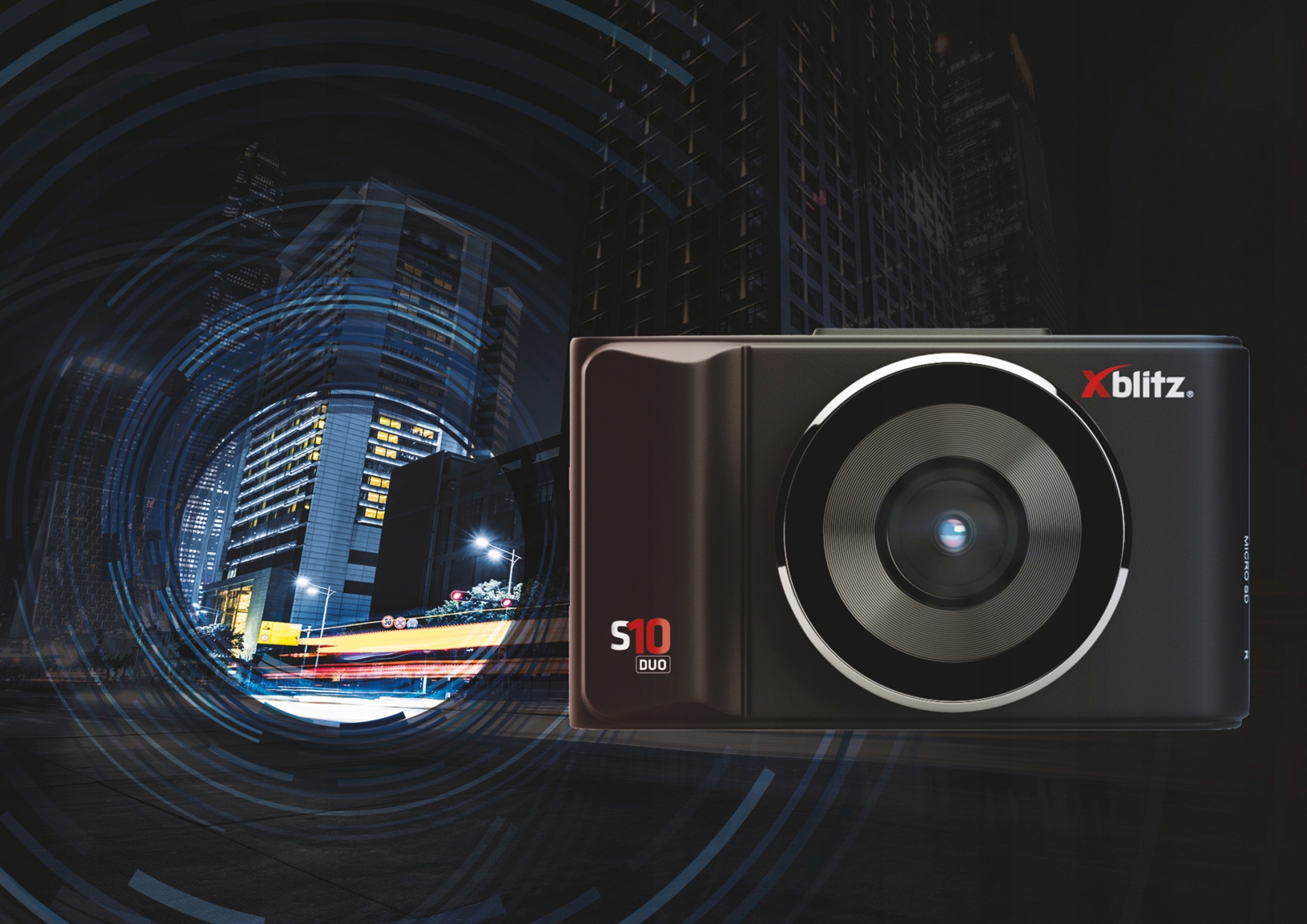 xblitz S10 Duo - це набір двох автомобілів - спереду та ззаду - які записують зображення у роздільній здатності повного HD, що дає вам повний контроль над тим, що відбувається з обох боків вашого транспортного засобу. Задню камеру можна додатково використовувати під час паркування як камери, що повертається.