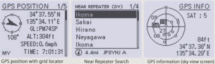 Завдяки вбудованому GPS ваше місцезнаходження та поточну інформацію на QTH Locator можуть перевіряти інші станції. Ви також можете перевірити відстань до інших станцій. З даними GPS про місцезнаходження можна використовувати різні функції GPS, як-от автоматична відповідь про місцезнаходження, пошук ретранслятора поблизу та функції журналу GPS.