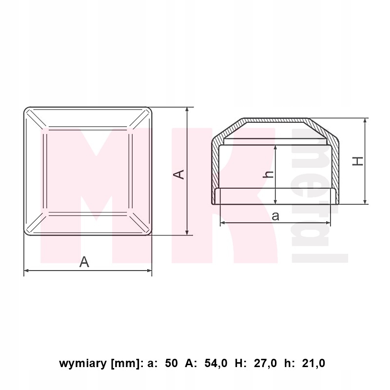 Чорна ковпачка для 50х50 профілю на навіс чорний ковпачок