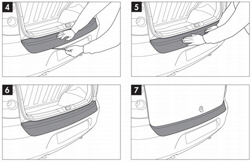 слід ретельно очистити і висушити поверхню бампера, а потім зламати захисну стрічку від смуги і обережно приклейте її до верхньої частини бампера. Потім притисніть смужку до бампера.