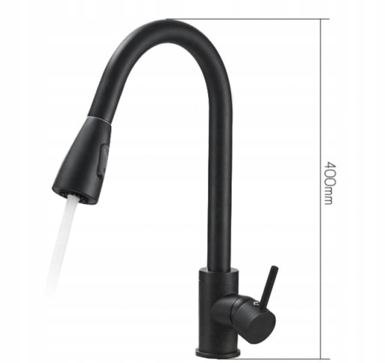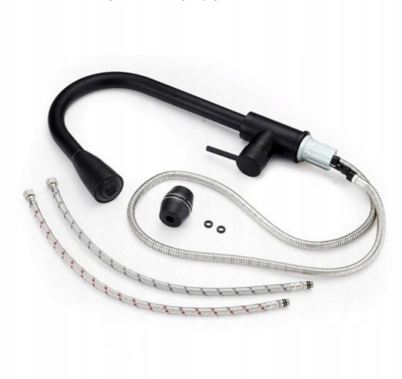 Заміська кухонна акумулятор Чорна мийка TAP витягнутий носик