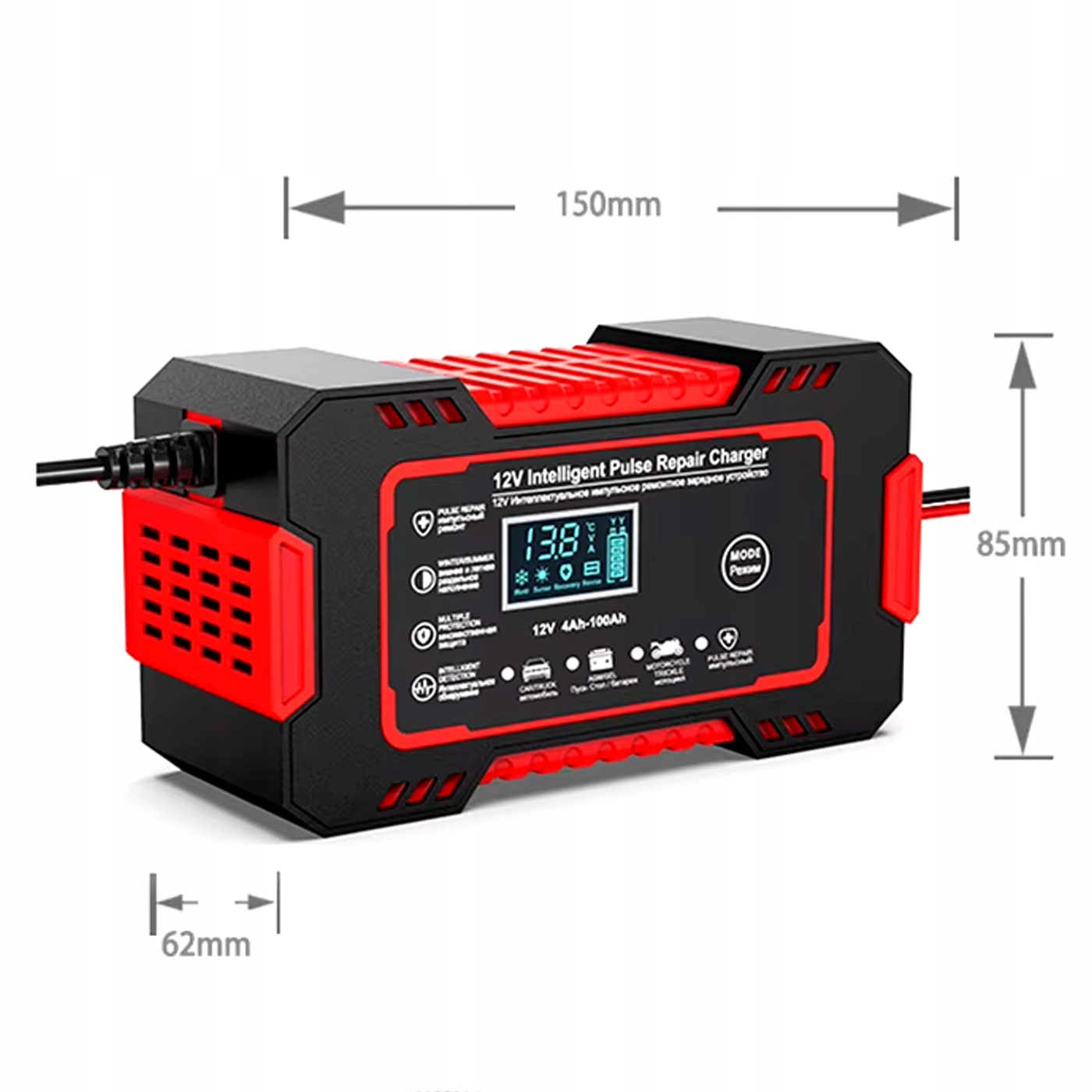 - імпульсні ремонт 12В 6a: відновлює ефективність вивантажених батарей, збільшуючи термін служби. > РК -дисплей: дозволяє точний моніторинг процесу зарядки. > універсальність: сумісна з AGM, гелем, EFB та кислотою кислотою з ємністю 4–100AH. перевантаження, коротке замикання та зворотна поляризація.