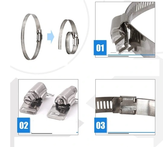 diy стиль порівняно з звичайними затискачами змії, наші затискачі дозволяють визначити власний розмір затискачів змії, ви можете вирізати ремінь на потрібну довжину залежно від ваших потреб. Їх легко встановити, спочатку прикріпіть кріплення елемента до смужки трубки, а потім відрегулюйте розмір гвинта за допомогою викрутки і, нарешті, прикріпіть шланг до пристосування.