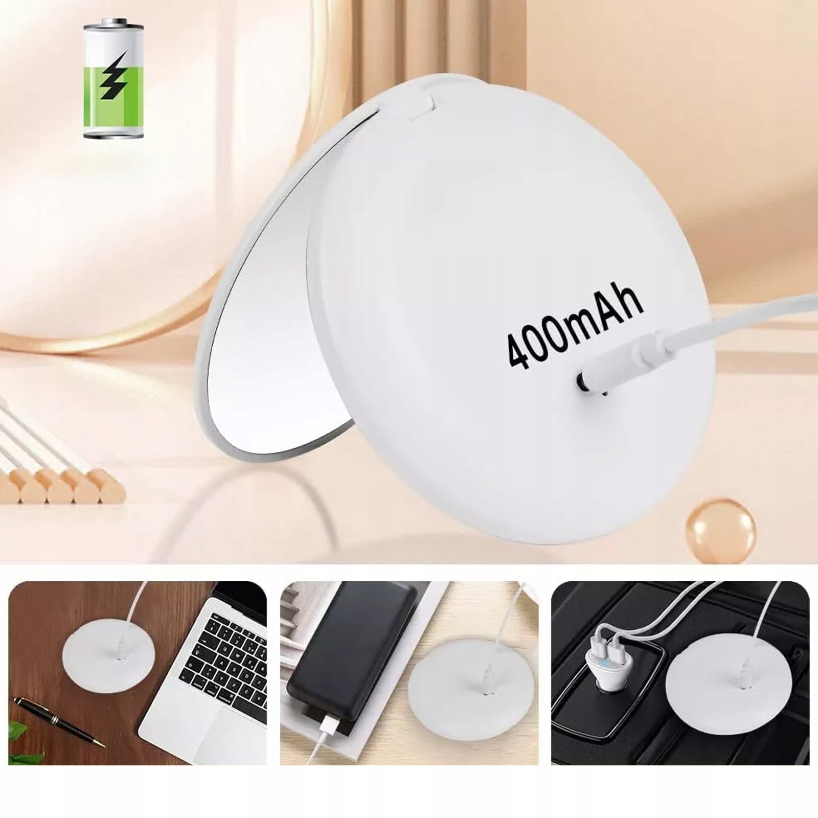 🌈【 Світло -портативне】 кругле світлодіодне дзеркало руки з можливістю зарядки має розміри лише 90 х 90 х 18 мм, завдяки якому він щодня вміститься у суєтній корпусі або сумці.