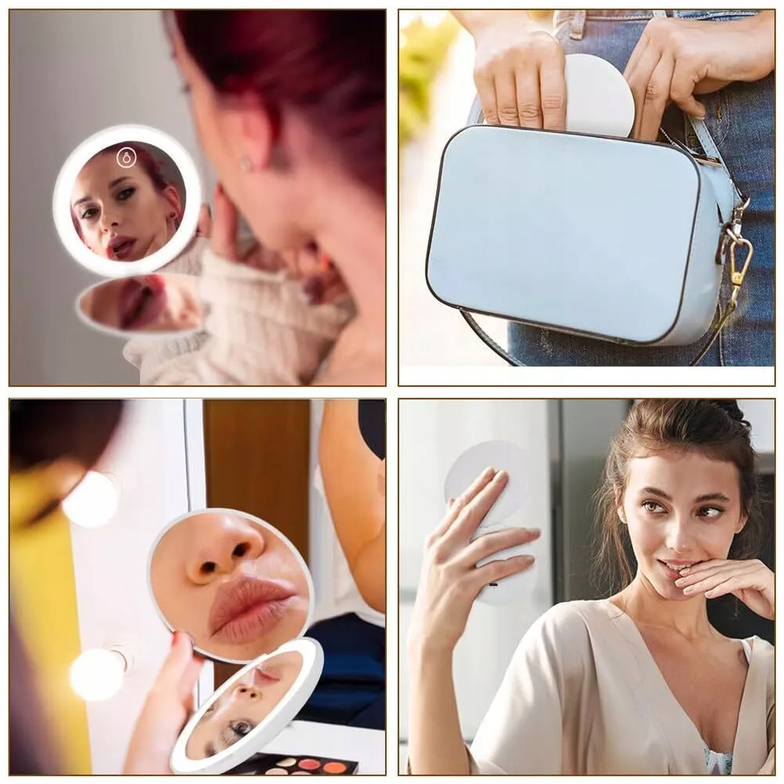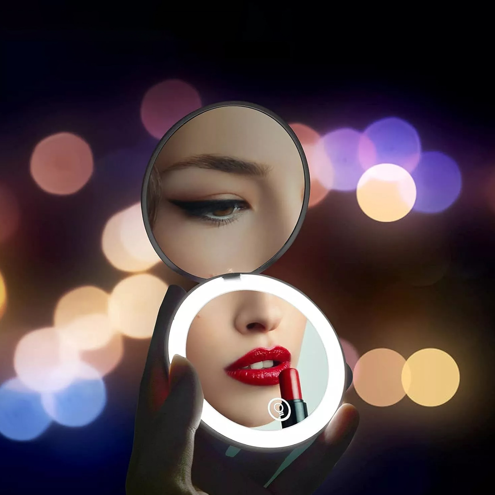 Збільшення дзеркала світлодіодного макіяжу 1x/10x кишенькове косметичне дзеркало