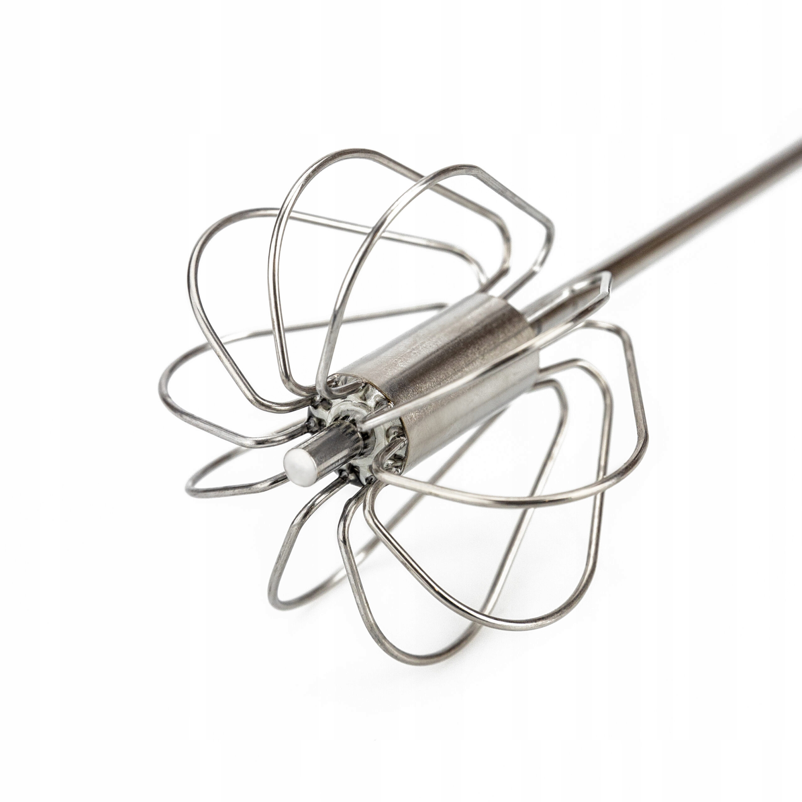 Найбільша перевага збивачки полягає в тому, що вона обертається. Вона не потребує застосування сили чи надмірних зусиль руками. Просто притисніть збивач до дна посудини, і пружина приведе в обертання механізм. Збивач виготовлений з високоякісної нержавіючої сталі, стійкої до механічних пошкоджень. Його легко підтримувати в чистоті та можна мити в посудомийній машині