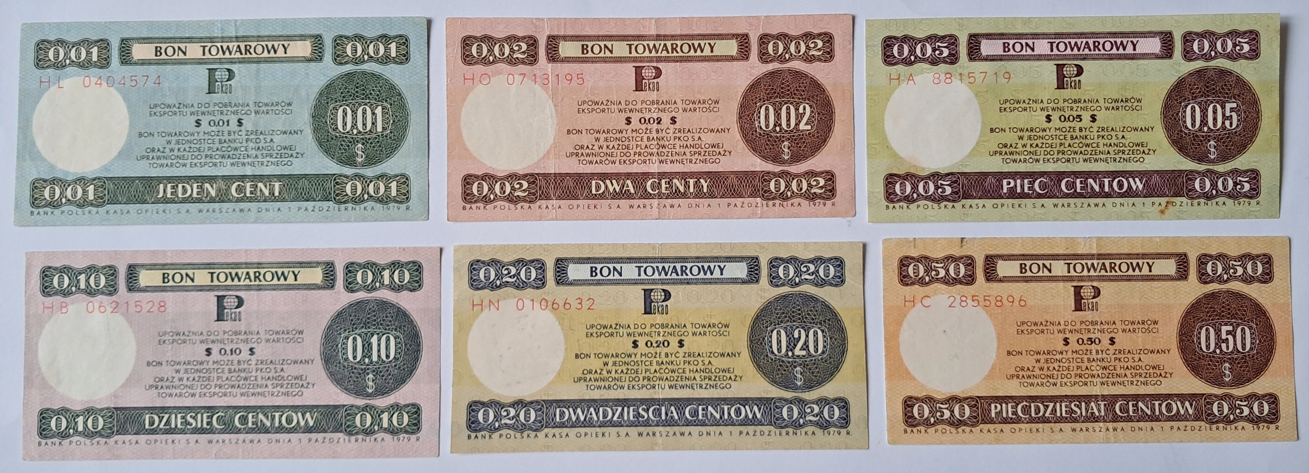 Zestaw Bonów Pekao Pewex od 1 do 50 Centów 1979 rok