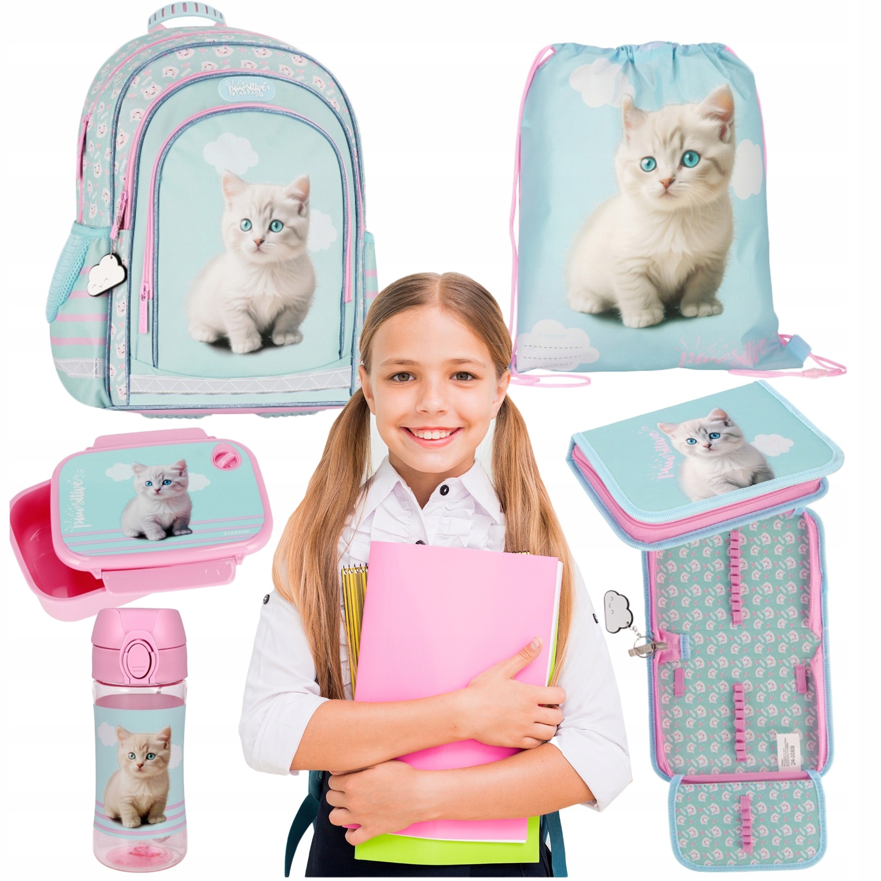 ZESTAW do SZKOŁY Wyprawki Dziewczęce z Plecakiem Wyprawka do 1 KLASY Kot