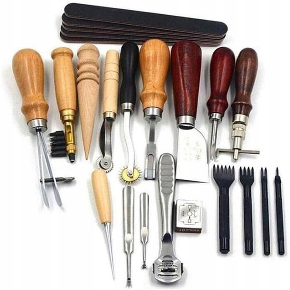 ZESTAW RZEMIEŚLNICZY DO OBRÓBKI SKÓRY NARZĘDZIA 18SZT WYSOKA JAKOŚĆ