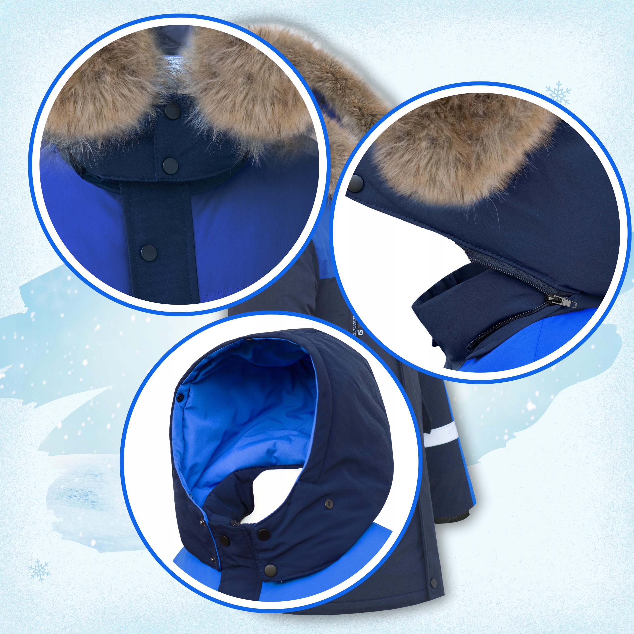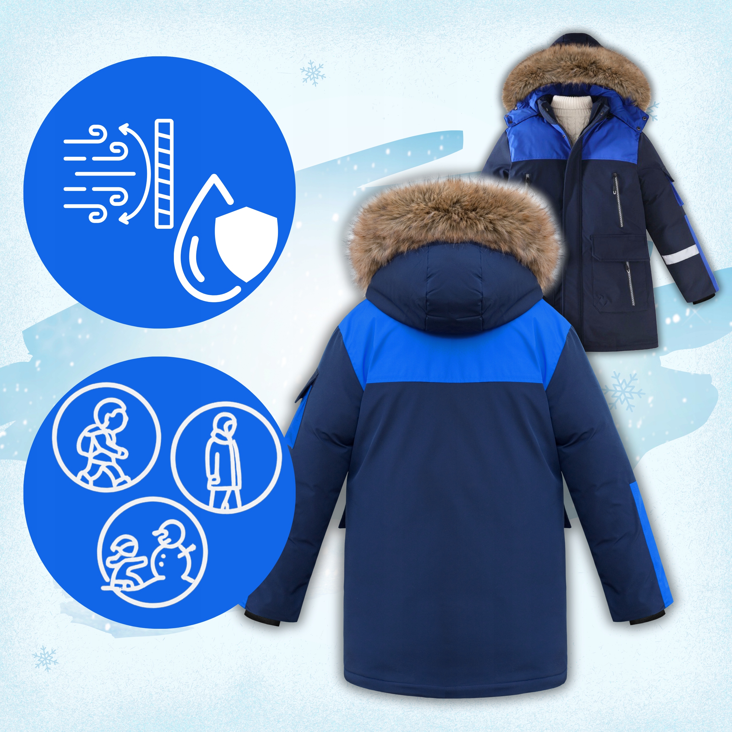 Шукаєте куртку, яка забезпечить вашій дитині максимальне тепло, комфорт і міцність у зимові дні? Ця зимова парка для хлопчиків - ідеальний вибір для сезону, повного низьких температур, сніжних розваг і повсякденних справ. Виготовлений з міцного матеріалу Cordura, стійкого до стирання та пошкоджень, він ідеально підходить як у дорозі до школи, так і під час активних ігор на вулиці. Повна хутряна ізоляція по всій довжині забезпечує високий тепловий комфорт, а подовжений крій парки ефективно захищає поперек і стегна від холоду - навіть коли сидите, нахиляєтеся або граєте на снігу. Це куртка, яка поєднує в собі функціональність, комфорт і стиль, щоб вашій дитині було тепло, комфортно та виглядало чудово.