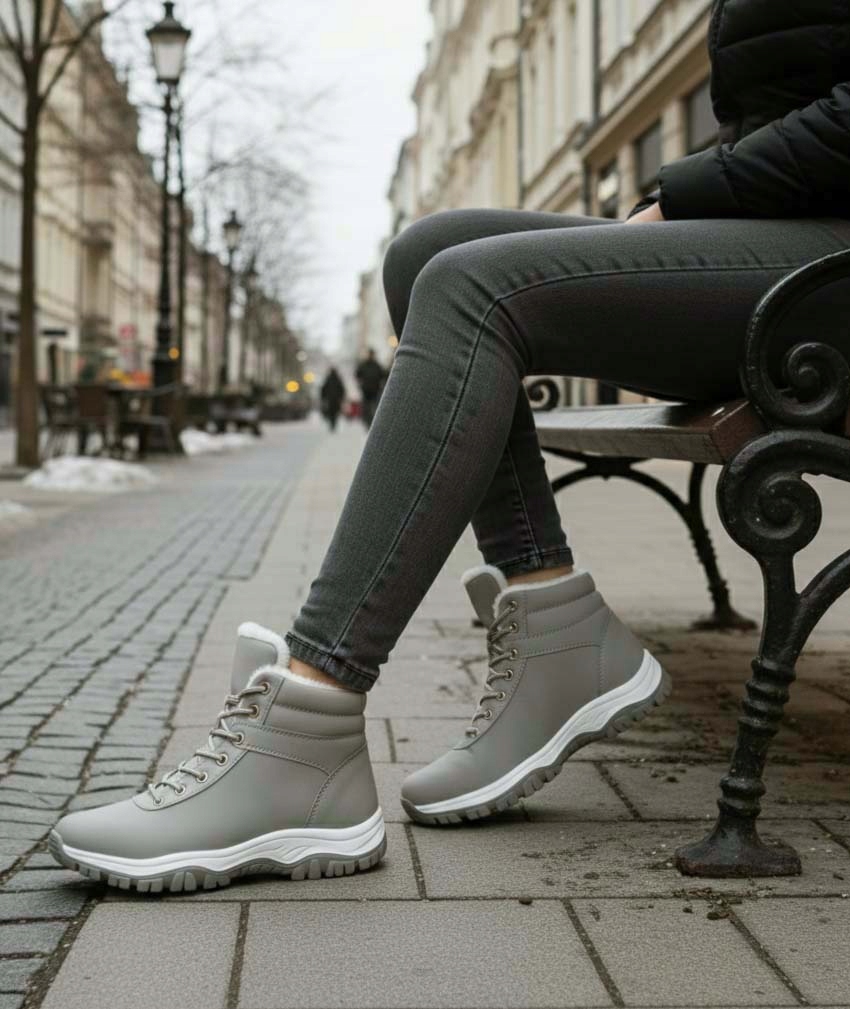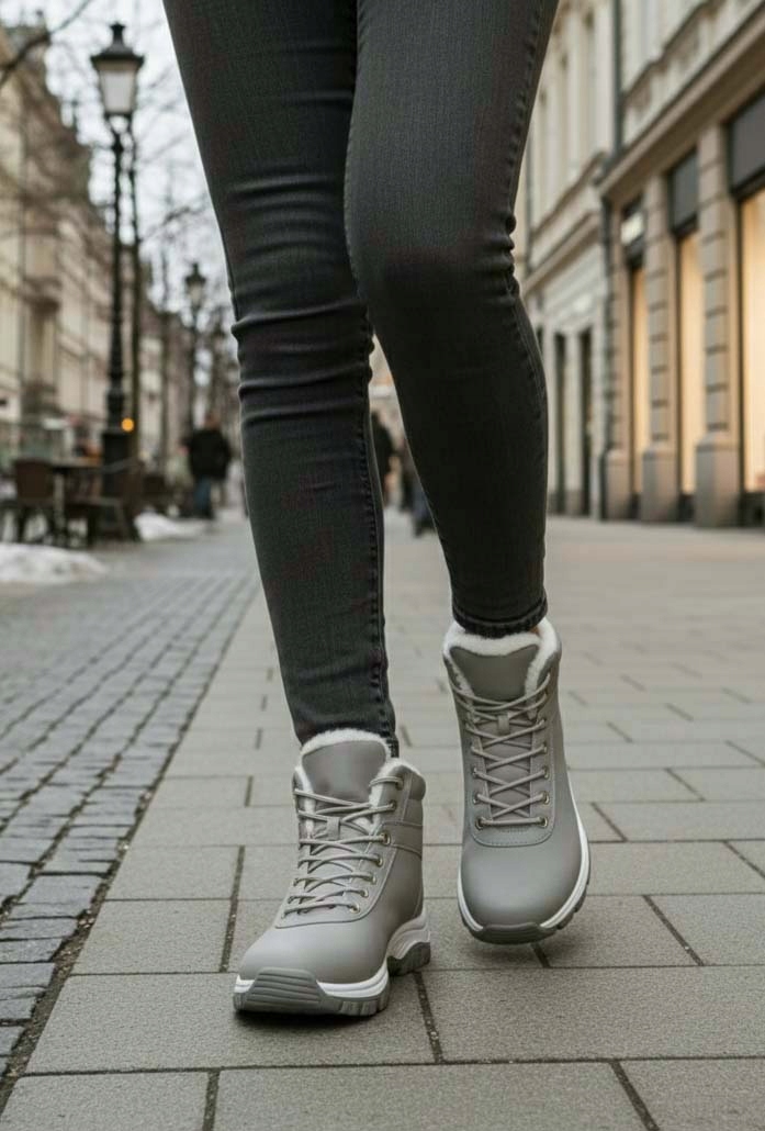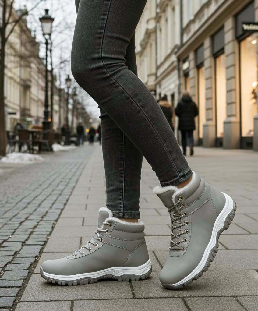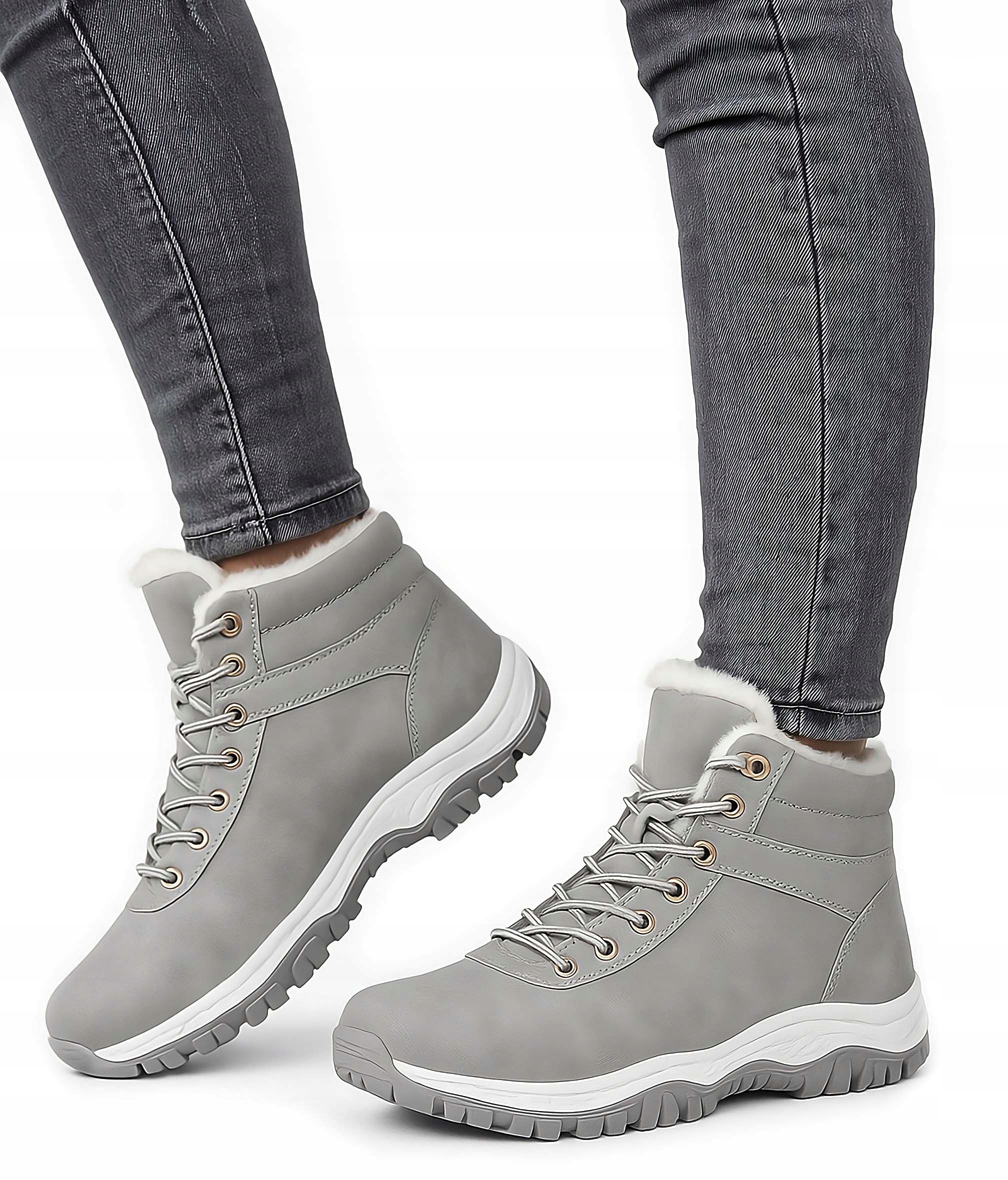 Зручні сірі СПОРТИВНІ БОТИ, СИЛЬНО УТЕПЛЕНІ ГУСТИМ БІЛИМ ХУТРОМ