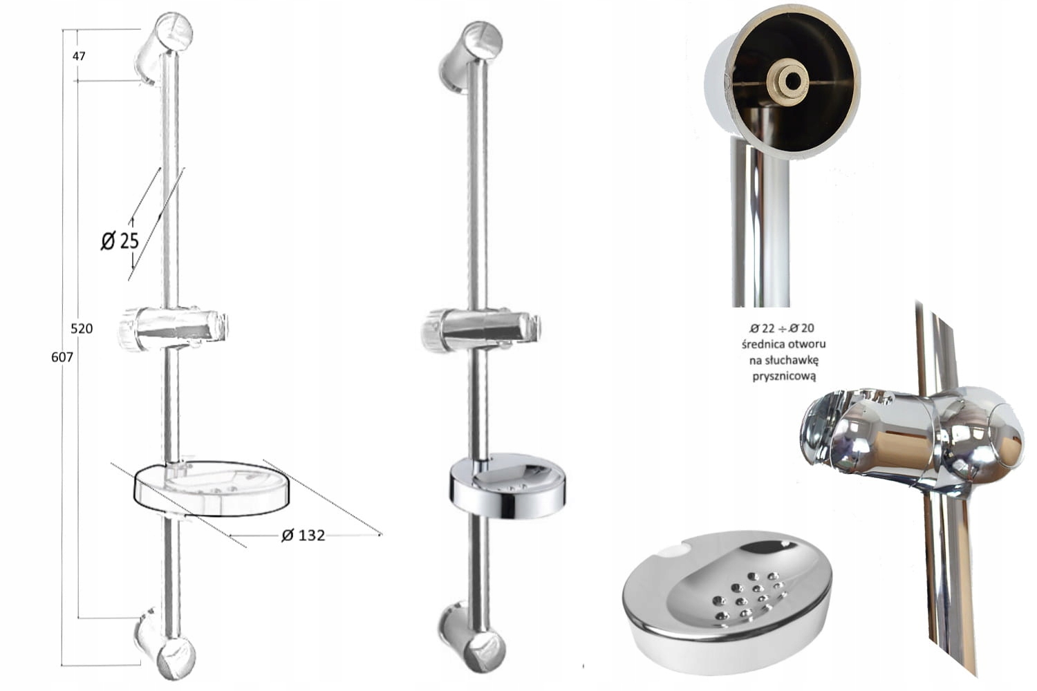 Дуже красива, сучасна, регульована душова штанга SOTBE LARK LARK-DSC-2483738 з мильницею, ідеально підходить для душу та ванни. Штанга виготовлена з хромованої нержавіючої сталі, а ручки кріплення та мильниця виготовлені з пластику.