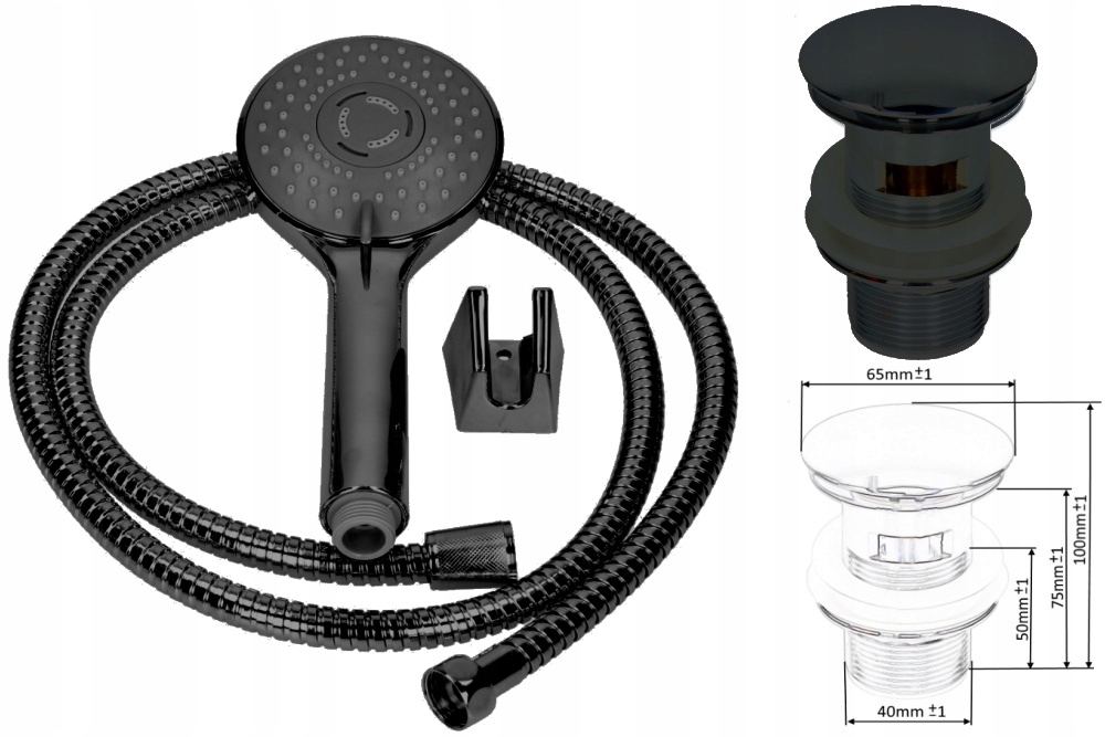 Додаткове оснащення: душова штанга LARK, заглушка клац-клак, душовий комплект - 3-функціональна душова лійка, душовий шланг, тримач для точки.