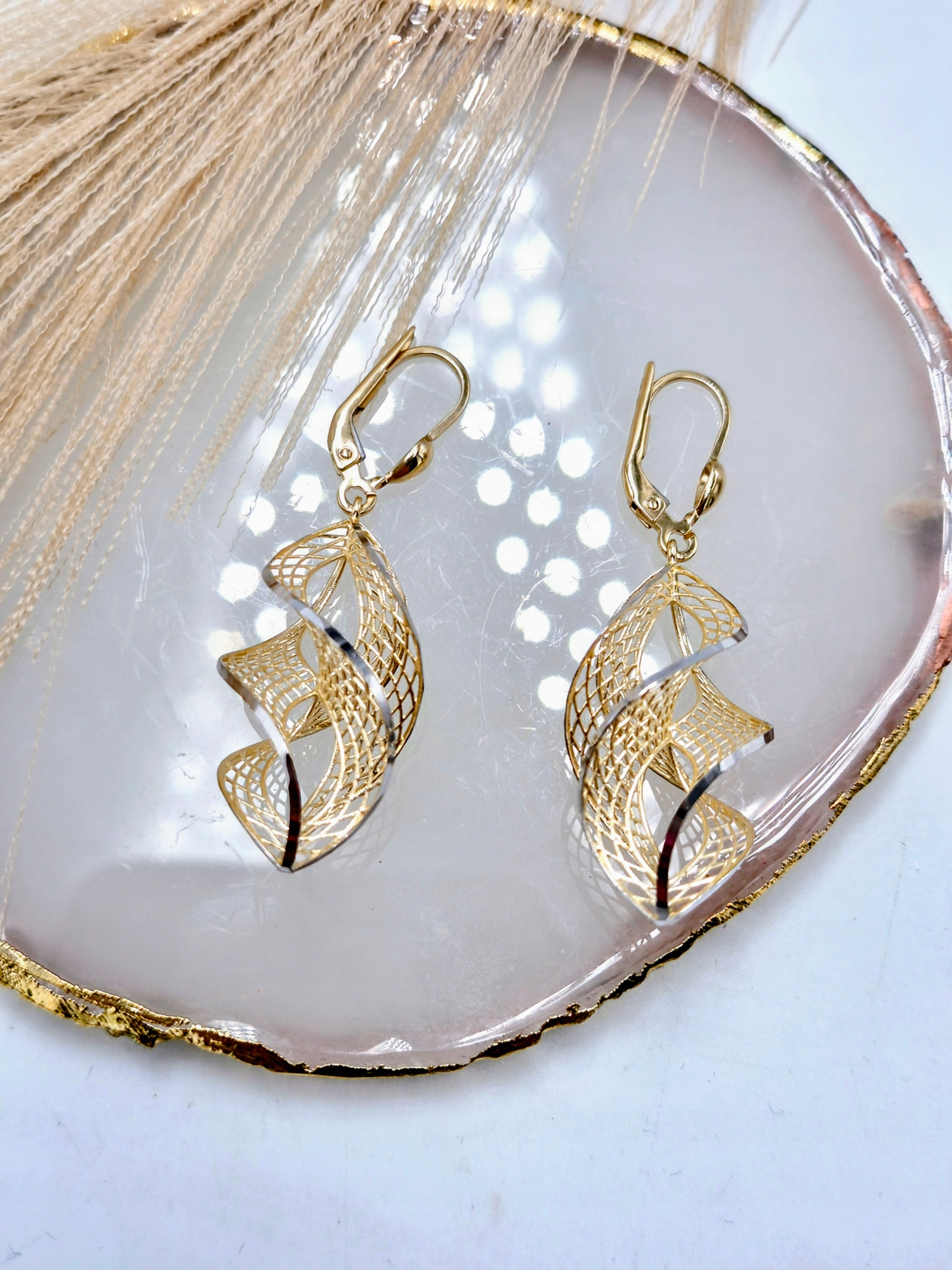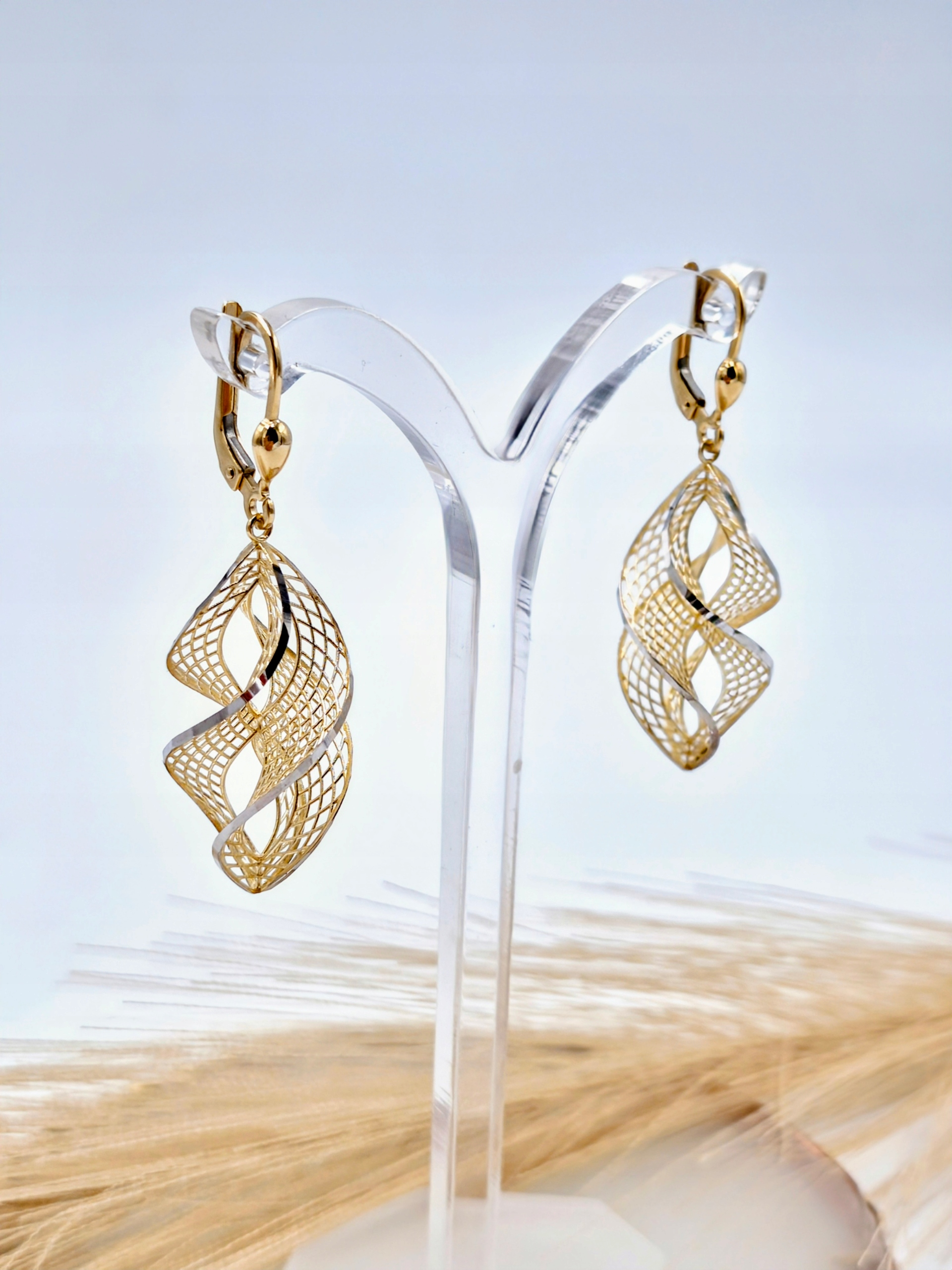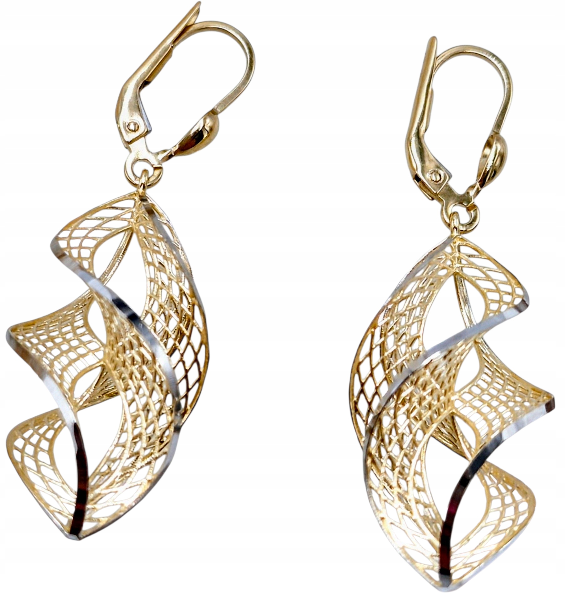 ✅ Золоті сережки, що висять спіралі з відкритими роботами з білим золотом, повністю виготовленим з високої якості 14-каратної золотої спроби 585 .