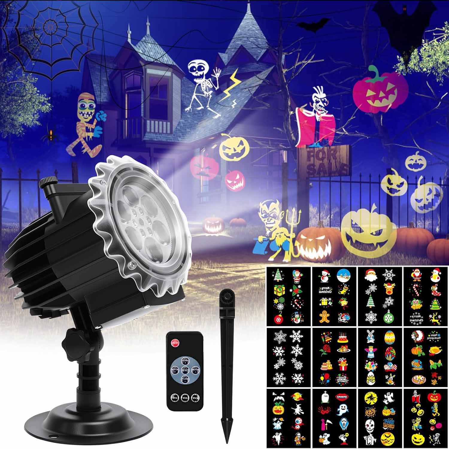 ✅ 【Ідеальна різдвяна прикраса для проектора】 Ця світлодіодна проекційна лампа створює романтичну атмосферу. Має 16 слайдів із 64 різними візерунками (з високоякісної фольги зі стійкими кольорами): сердечка, День подяки, Різдво, день народження, Хеллоуїн, гарбуз, сніжинка тощо. Легко прикрасьте свою кімнату та сад у будь-яку пору року, створюючи святкову атмосферу на Різдво, Новий рік, свята та вечірки.