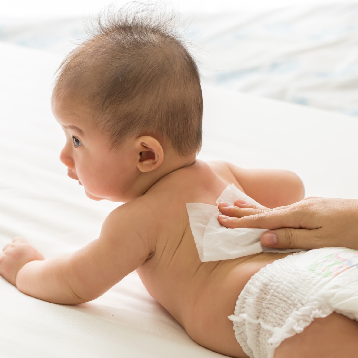 Видаліть хустинку, очистіть шкіру дитини, уникайте контакту з очима. У разі контакту з очима мийте їх водою. Зберігання: Підставки слід закрити після кожного використання, зберігаються догори дном з моменту відкриття, в сухому та прохолодному оточенні, подалі від сонячного світла. Ви повинні зберігатись у невидимому та недоступному для дітей.