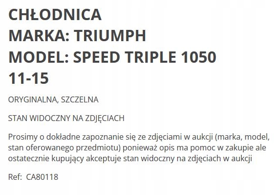 Покупая «, Triumph Speed Triple 1050 11-15 CH0 Cooler», вы можете быть уверены, что данное изделие из каталога «Радиаторы» вы получите через 5-7 дней после оплаты. Товар будет доставлен из Европы, проверен на целостность, иметь европейское качество.