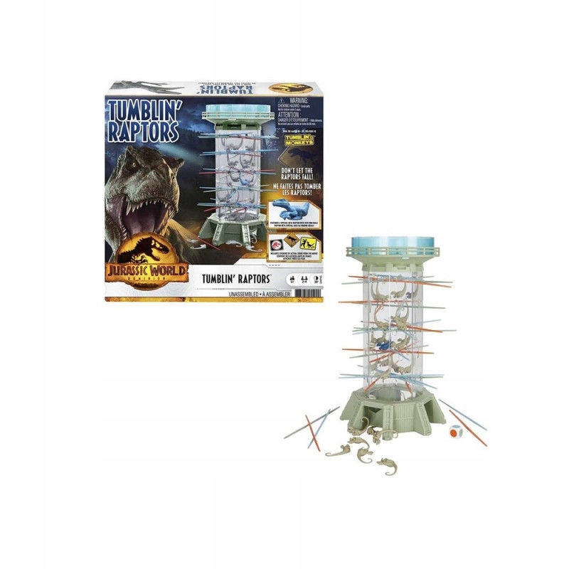 - Не позволяйте динозаврам сбежать! Вдохновленная фильмом башня содержит элементы в форме велоцирапторов. Игроки вытаскивают палки, пытаясь не дать динозаврам упасть.