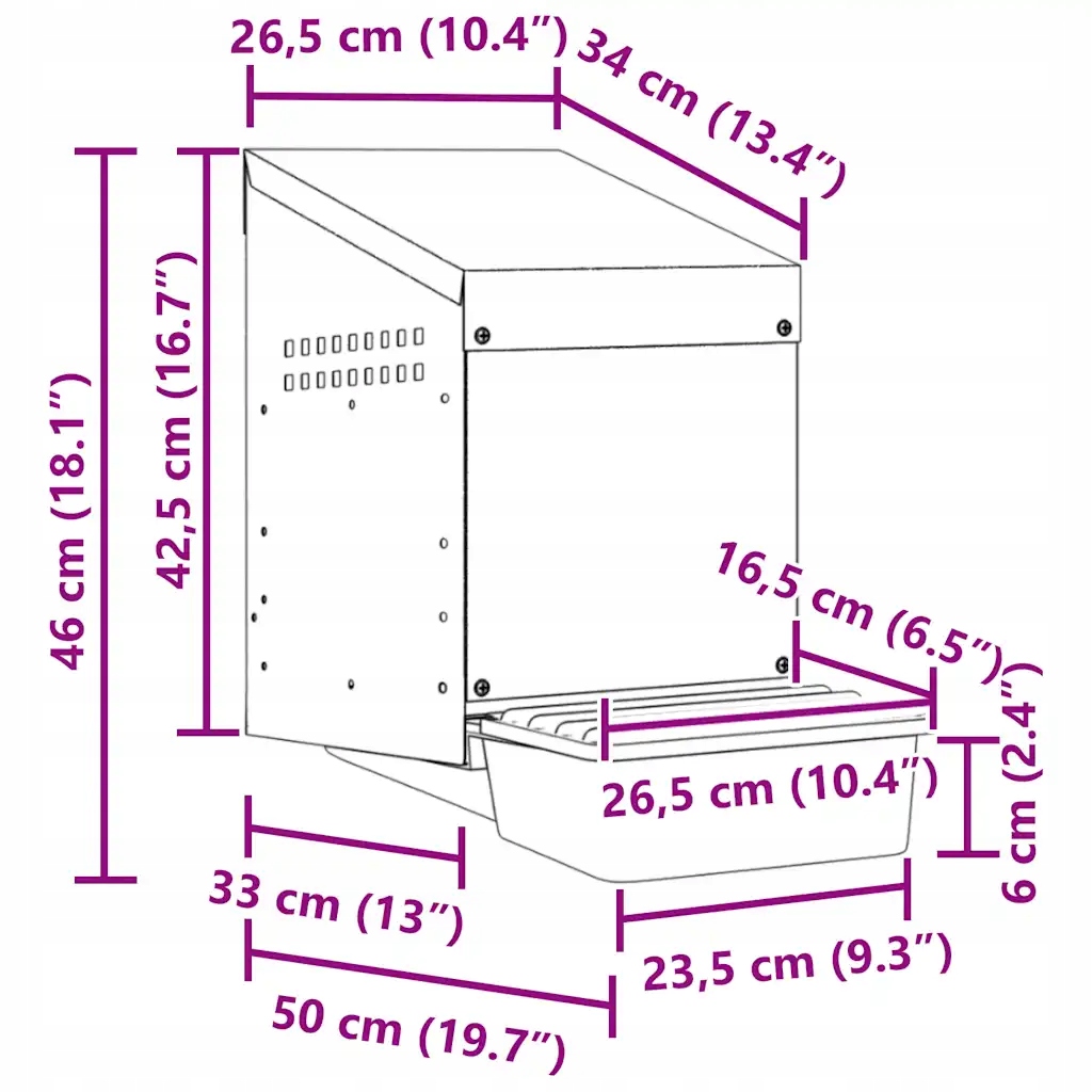 - Размеры: 26,5 x 50 x 46 см (ширина x Глубина x Высота)