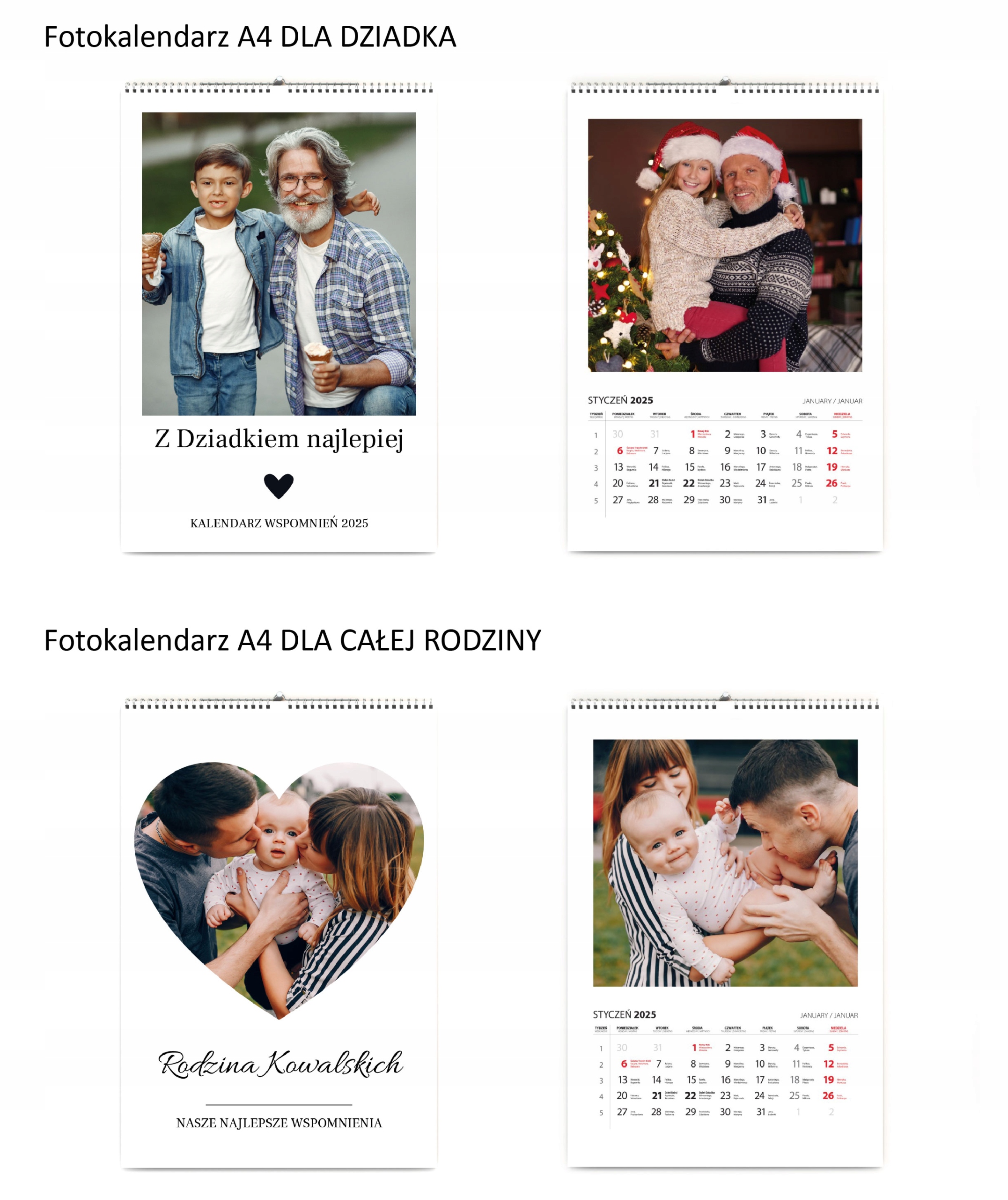 1x настенный фотокалендарь А4 ВАШИ ФОТО 13 карточек