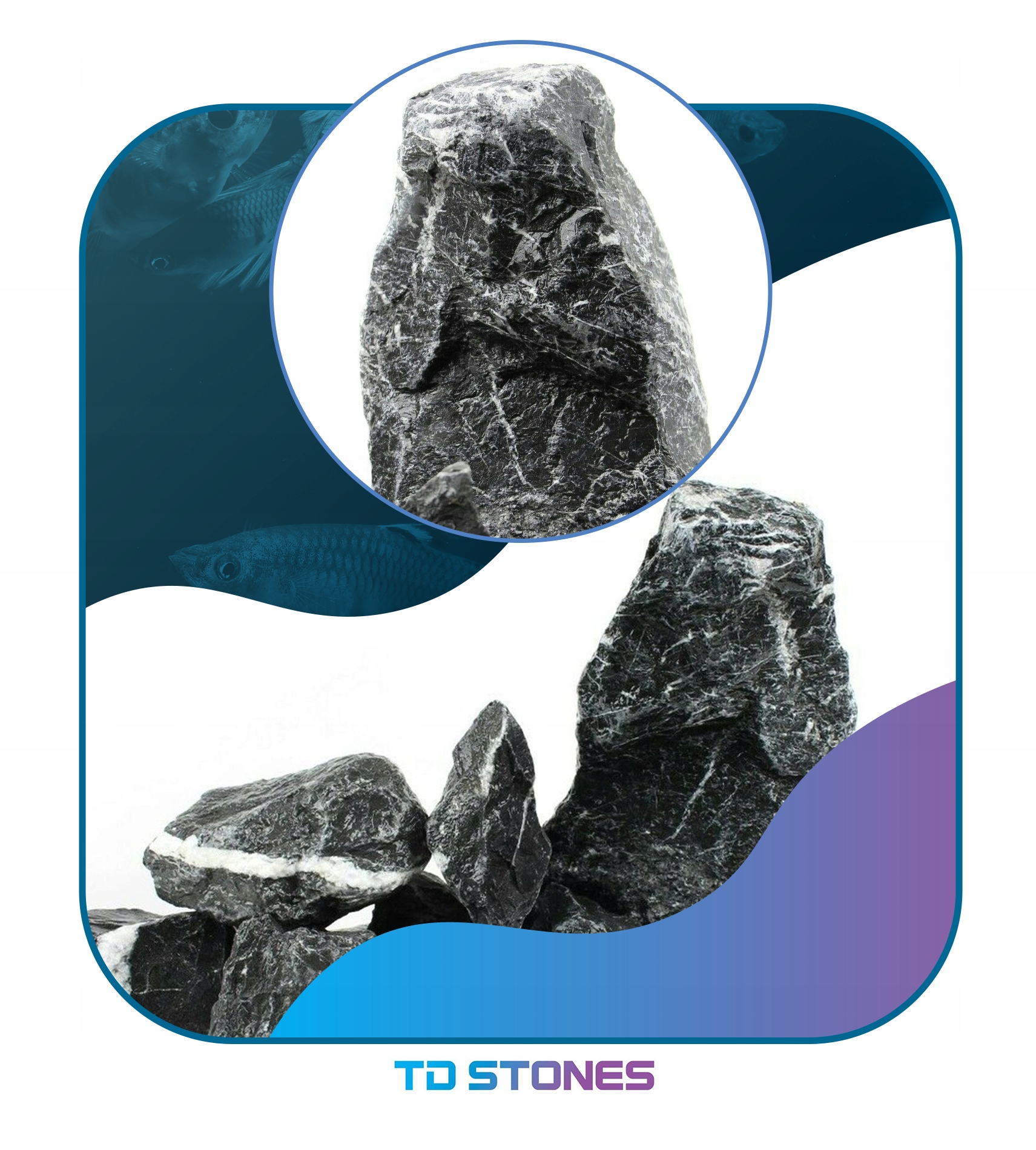 Темная скала - идеальный выбор для танганьики и аквариумов Малави, где эти камни стабилизируют рН и затвердев. В контакте с водой и в соответствующем освещении они приобретают тонкое сияние, создавая восхитительный ландшафт в аквариуме