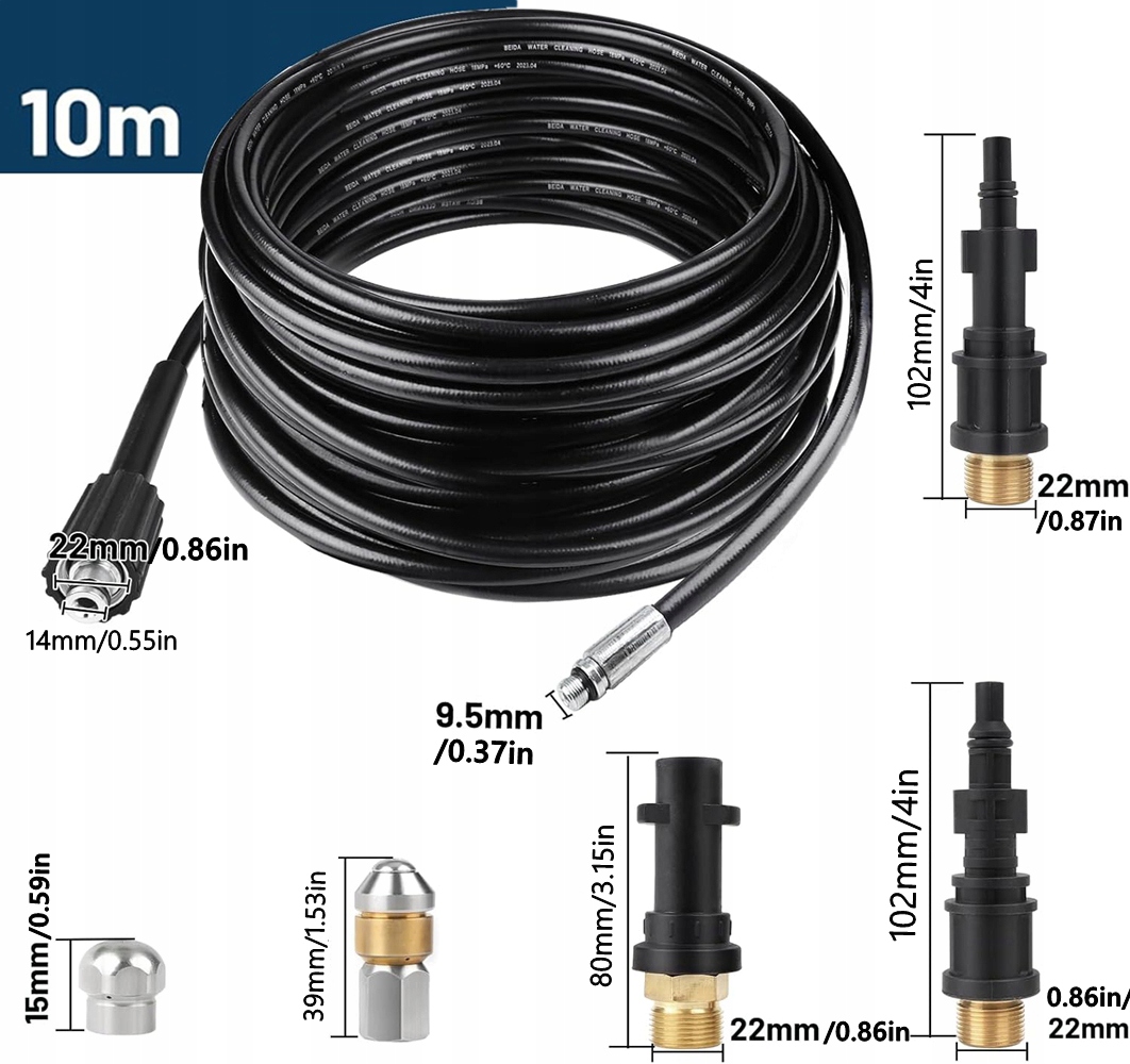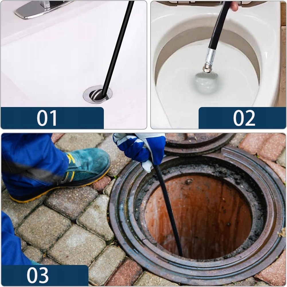 💧 Интенсивная очистка труб : Наш набор шлангов для очистки оттоков высокого давления обеспечивает эффективное решение для очистки труб с рабочим давлением до 2000 фунтов на квадратный дюйм и максимальной температурой 60 ° С.