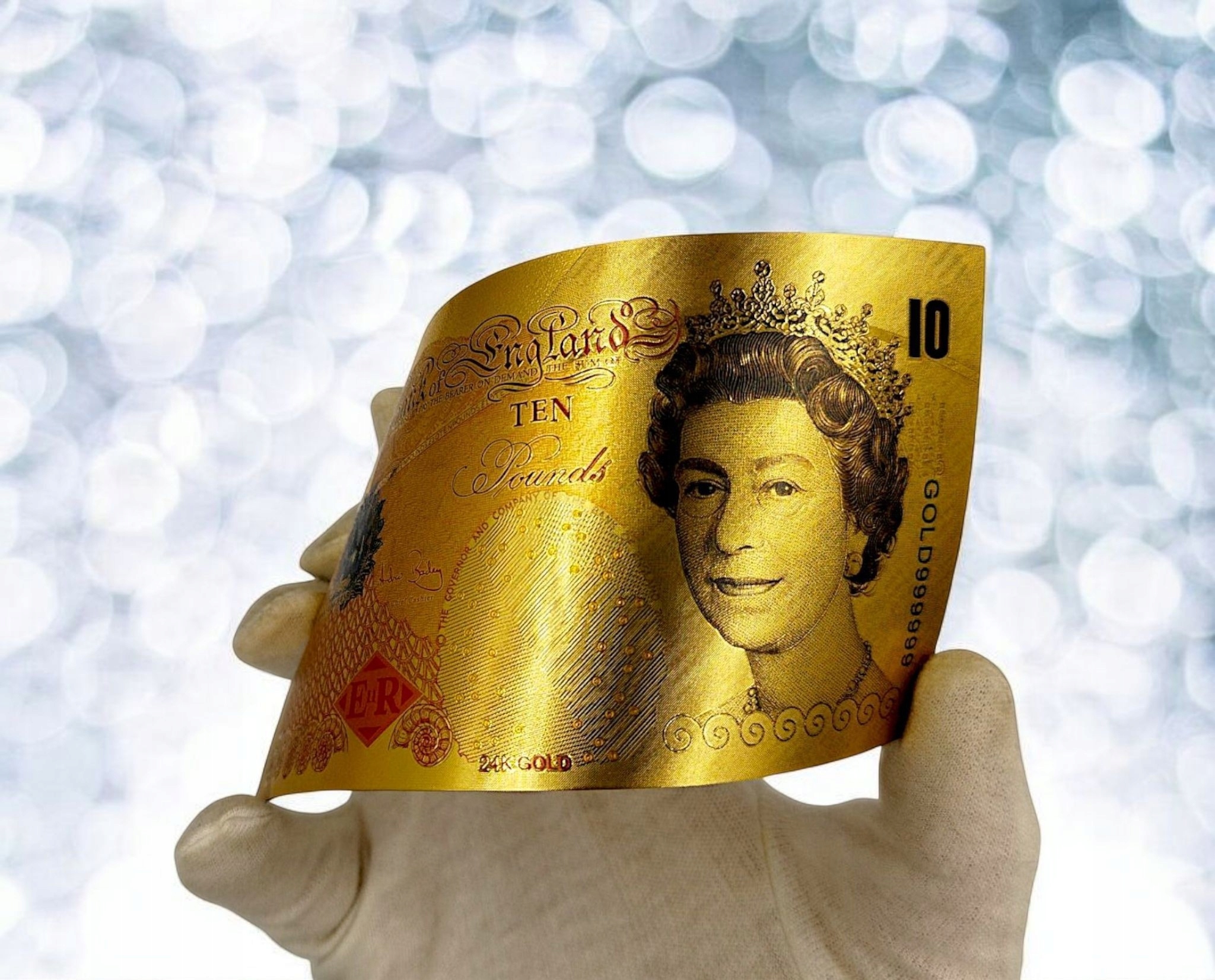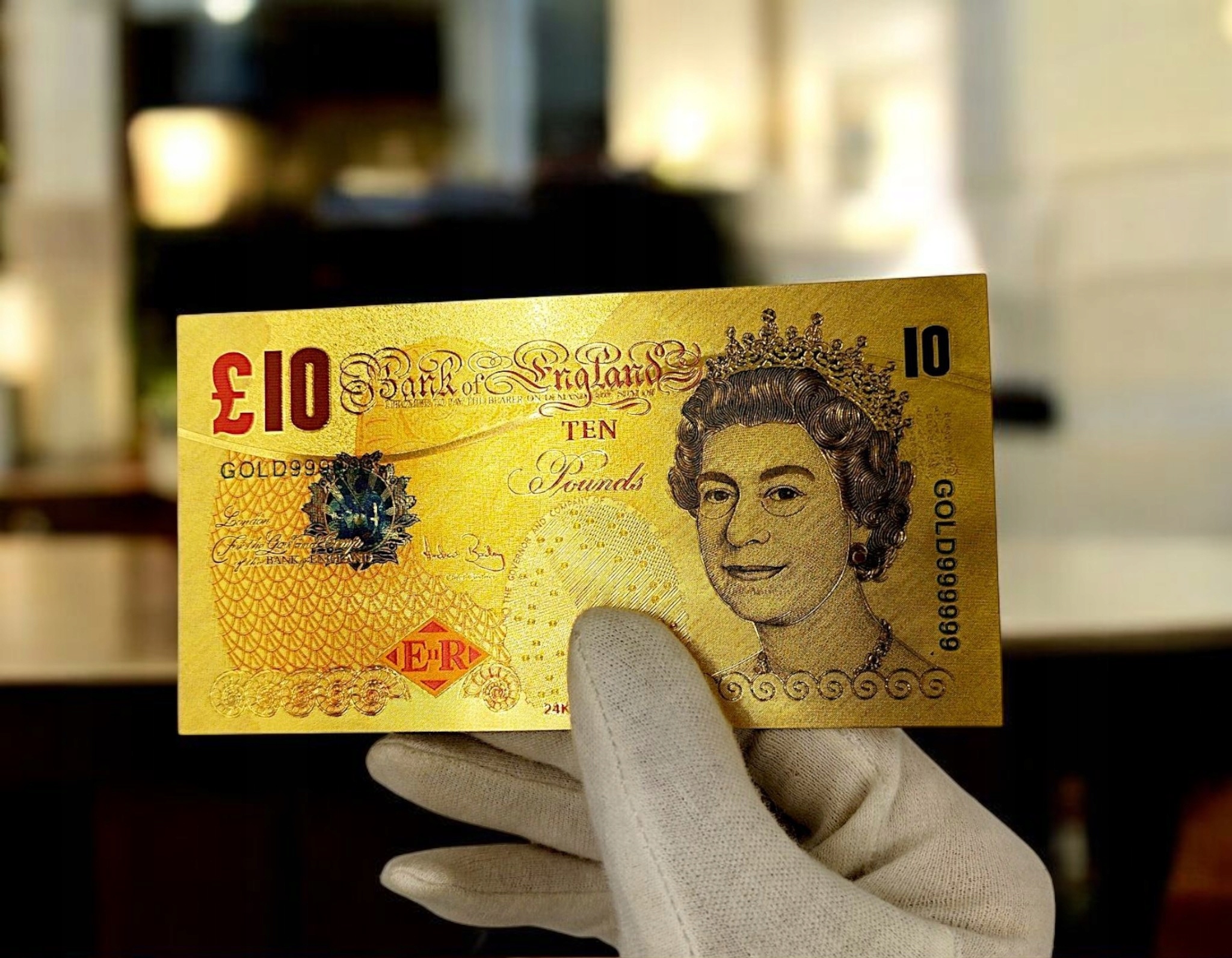 10 британских фунтов до 2017 г. Причудливая копия банкноты из ПВХ, наполненного золотом h1>