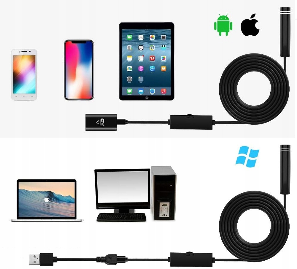 Широко совместимый эндоскоп: Беспроводной эндоскоп Wi-Fi можно использовать с Android/iOS, iPad и Windows. Оснащенный гибким полужестким змеевидным кабелем длиной 10 метров, он может протянуться во все уголки вашего дома. В комплекте 3 аксессуара: зеркало, магнит и крючок. Зеркало помогает достать ограниченные предметы, магнит притягивает металлические предметы, а крючок помогает удерживать мелкие предметы.