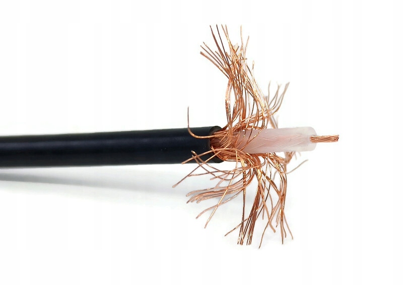 качественный кабель 50 Ом RG-58 Производство премиального производства SATEC с внешним диаметром 5 мм, в котором центральная вена была изготовлена в виде 0,96 мм медного кабеля в виде покрытого покрытого веревкой в веревке на 90%! Диэлектрик изготовлен из твердого полиэтилена. В отличие от дешевых продуктов, он характеризуется хорошими электрическими параметрами - низкое затухание и высокая эффективность скрининга